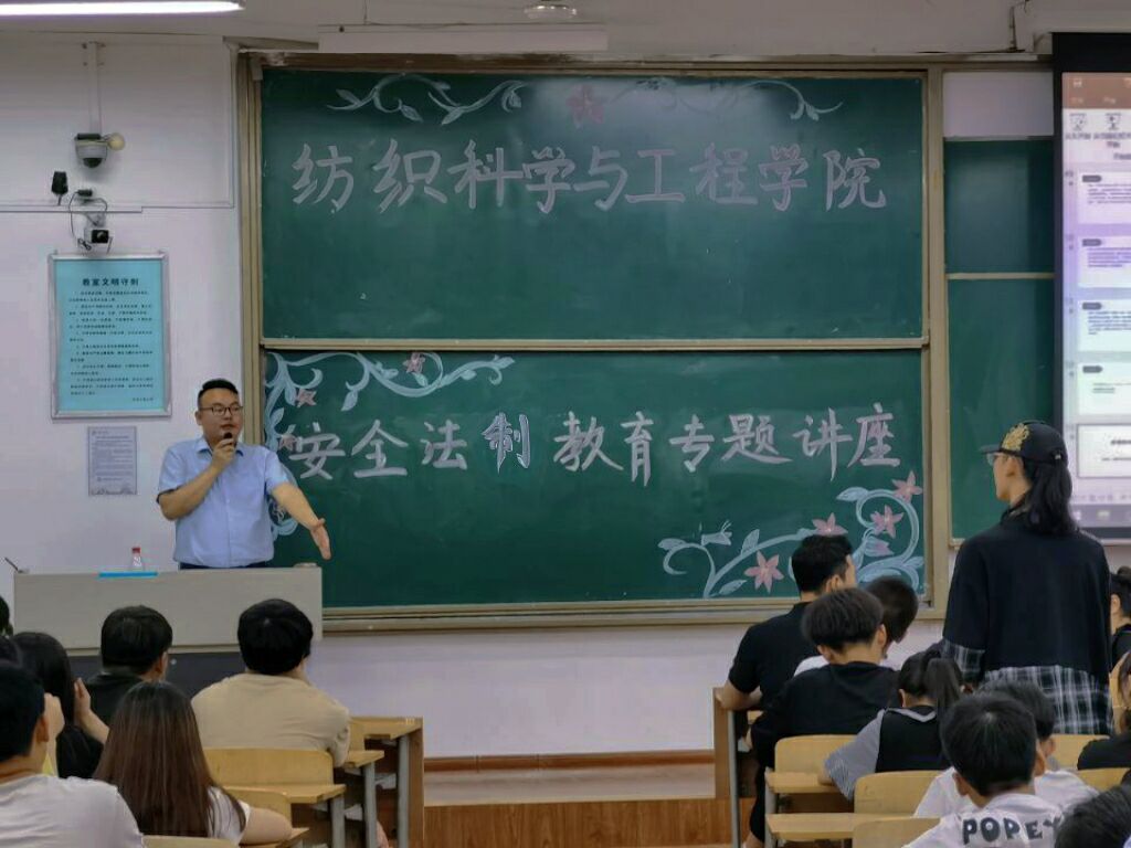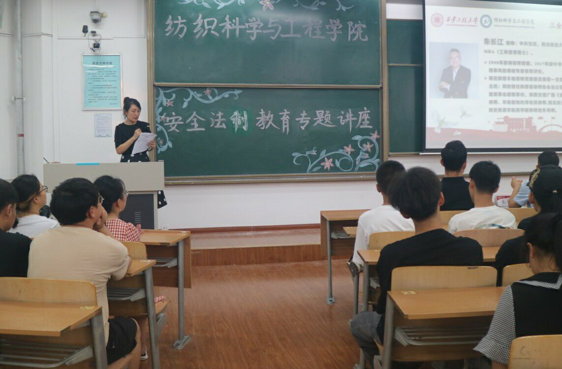 2021年5月12日,纺织科学与工程学院三全育人导师团在临潼校区B-237教室举办安全法制教育专题讲座,邀请陕西丰瑞律师事务所律师朱长江作题为《预防套路贷、求职陷阱》的讲座。学院党委副书记郭西平,辅导员曹鑫、苏娜,2019级、2020级部分学生参加活动。