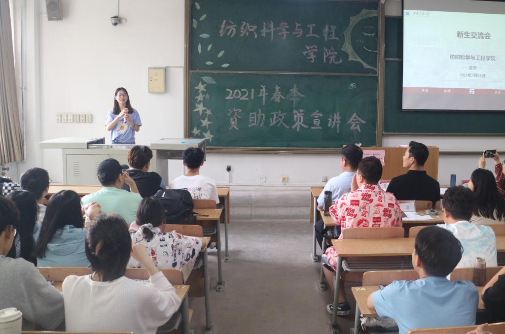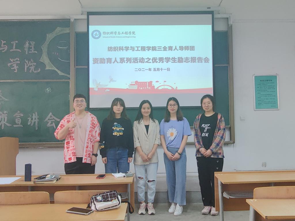 为深入贯彻习近平总书记关于大学生教育相关指示精神,推动立德树人根本任务落地落实,不断深化资助育人工作成效,2021年5月11日,纺织科学与工程学院三全育人导师团在临潼校区A-228教室举办资助育人系列活动之优秀学生励志报告会。学院2021届省级优秀毕业生及毕业生孟雪、郝栋连、张玉婷,省级优秀毕业生干部杨雯静、张领作交流发言。学院辅导员邓恩征、曹鑫、刘要及2019级、2020级部分学生代表参加活动。