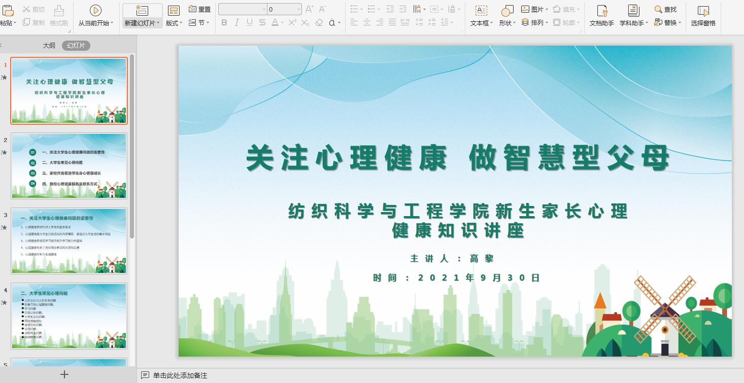 为使2021级新生家长重视学生心理健康教育,联动家校力量关注学生心理健康,2021年8月30日,纺织科学与工程学院在线上举办2021级新生“家长学校”心理咨询辅导专题讲座,校心理健康教育与咨询中心教师高黎担任主讲人,2021级新生家长参加了本次宣讲。
