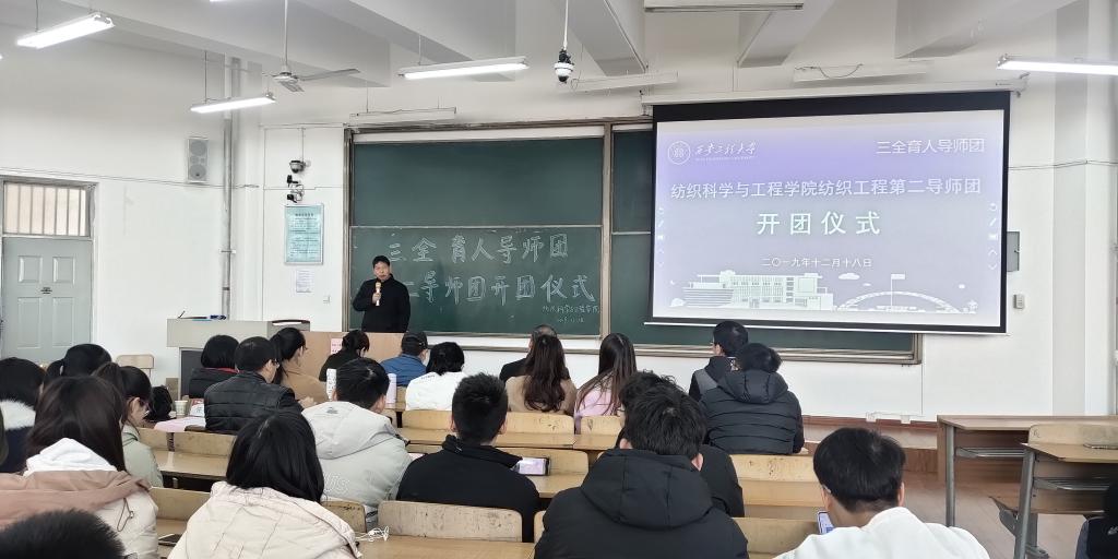 为深入贯彻落实习近平新时代中国特色社会主义思想和党的十九大精神,增强育人工作实效性,构建我校思想教育体系、知识传授体系、人生引领体系三大体系协同配合的高水平人才培养机制,逐步形成全员育人、全过程育人、全方位育人的格局,继纺织工程第三、第四导师团、轻化工程第一导师开团后,纺织科学与工程学院纺织工程第二导师团于12月18日在临潼校区顺利开团。