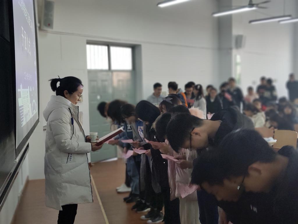 其次,纺织工程第二导师团执行团长武海良教授介绍导师团成员组成,2018级辅导员、导师团秘书邓恩征解读《俄罗斯294专享会“三全育人导师团”实施办法》。接着,学生持拜师贴依次找导师拜师并合影留念,将本次活动推向高潮,学生们12人一组,手持拜师贴,向导师递茶水,并郑重承诺“做到勤学、勤问、勤看、勤听”,希望导师不吝赐教,并向导师鞠躬致谢。最后,武海良教授作了题为《面向未来,学好纺织》的报告,学生听完纷纷表示获益匪浅。