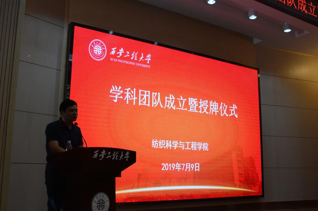 最后,胡小进代表学院对学校领导和部门一直以来给予纺织学院的关心和支持表示衷心感谢,并表示纺织学院将以此次学科团队成立为新起点和新契机契机,进一步增强危机感和紧迫感,团结一心,艰苦奋斗,瞄准目标,扎实推进,为实现追赶超越、一流学科建设目标,为做强纺织、复兴学院而不懈努力。
