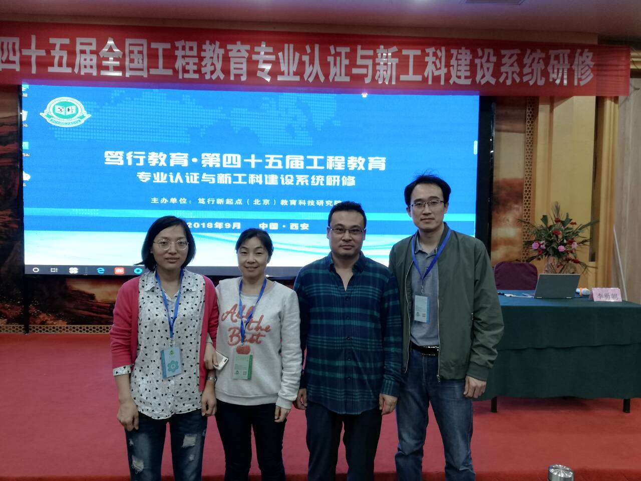 2018年9月20-21日,纺织科学与工程学院刘呈坤副院长、赵勇进、王蕊宁、盛翠红4名教师参加了“笃行教育•第四十五届全国工程教育专业认证与新工科建设系统研修班”。