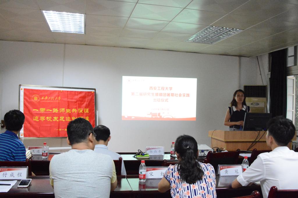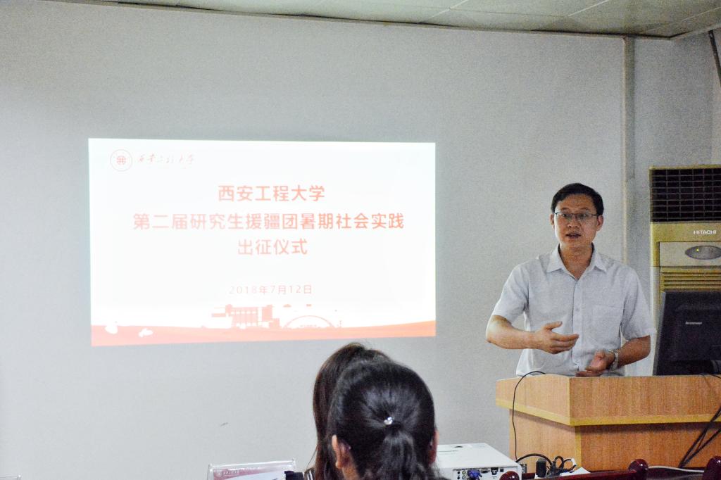 2018年7月12日,纺织科学与工程学院在金花校区纺织楼学术室举行了第二届研究生纺织援疆团暑期社会实践出征仪式,出席本次仪式的主要嘉宾有校团委书记王晓先老师、研究生工作部黄冠老师、学院副院长王进美老师、党委副书记郭西平老师、纺织工程实验室宋红老师(本届援疆团带队老师)、轻化工程师文钊老师、学生工作办公室主任赵勇进老师、学院团总支书记付成程老师,以及第一届和本届援疆团成员们。