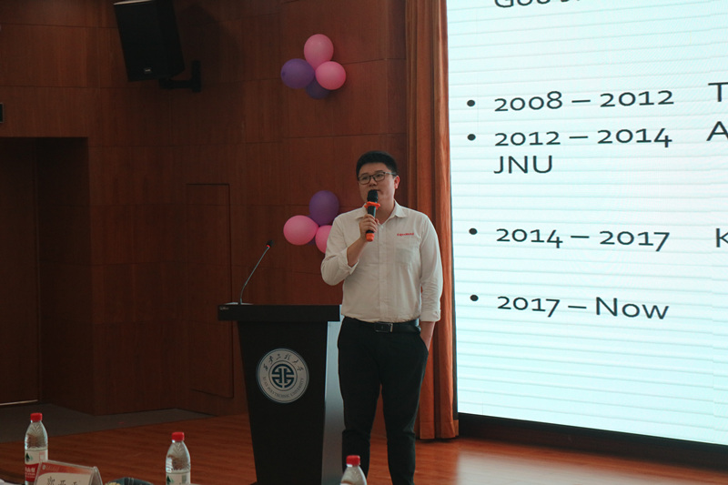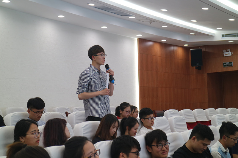 报告会伊始,郭老师向大家简要介绍了本次报告会主讲人苟捷以及出席本次大会的嘉宾。随后在同学们热烈的掌声中,苟捷学长开始了他的演讲。苟捷学长首先讲述了自身的本科以及硕士学习经历,他以自身丰富的学习经验向同学们强调了个人课外学习的重要性,并且劝诫同学们不要仅仅拘泥于课堂知识,要在课堂与课外找到一个平衡点。接着,苟捷学长向大家介绍了他的求职经历,分享了他敢于突破自己,超越自己,最终找到自己满意的工作的心路历程。这为同学们勇于突破自己树立了信心。大会接近尾声,同学们积极踊跃地针对自身疑惑与苟捷学长交流,苟捷学长一一耐心解答,同学们都获益匪浅。
