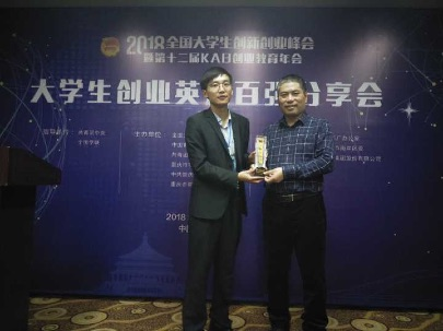 KAB全国推广办公室秘书长魏和平为我校杨楠同学颁奖。在大学生百强创业英雄座谈会,杨楠同学作为代表进行发言,他表示,日后将会更加努力,在做好骊山鹿鸣教育公司的同时,不忘初心,让贫困地区的广大儿童从小也能接触到像3D打印科学设计、机器人教育及青少年编程等优质的科技教育资源。杨楠在交流中表示,感谢母校的大力支持,以后将更加努力,珍惜新时代给创新创业的机会。他希望把西安骊山鹿鸣教育科技有限公司做得更好,让自己的创业成果为母校增光,为青春添彩!