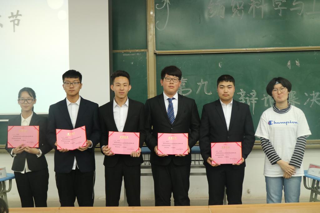 本场比赛在激情飞扬的初赛影集视频中拉开帷幕。随后主持人介绍了活动目的,就辩论赛的比赛赛制、晋级规则及评分细则为大家一一阐明,接着比赛正式开始。晋级的八支队伍共分为四场比赛。八支队伍中的各位辩手都使出浑身解数,力图使对方辩友理屈词穷。他们时而列举事例时而陈列精确数据给对手带来巨大的杀伤力,逗趣的带有方言味的普通话经常爆笑全场,推动现场气氛。在唇枪舌剑激烈交锋之际,各种思维陷阱也一一设下,令人防不胜防。"皮队"的舌灿莲花,"wakanda"的条理分明,"super队"的有理有据,常常令场下观众拍手叫好。赛场上选手们唇枪舌剑,互不相让,碰撞出思想的火花;赛场下,观众大快朵颐,拍手叫好。四组辩论赛结束后,评委进行专业严谨的点评,在场辩手都获益匪浅。随后进行颁奖仪式,经过紧张的比拼,最终"皮队"“wakanda队”以及“super队”三队辩手分别获团体一二三等奖;“你猜我叫什么队”、“6飞论队”等五队获“团体优秀奖”;同时曾博浩同学获本届辩论赛"最佳辩手"称号;宋悦悦、镇霄等五名同学获"优秀辩手"称号。最后,评委为获奖队伍及个人进行颁奖并合影留念。