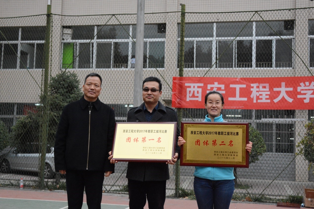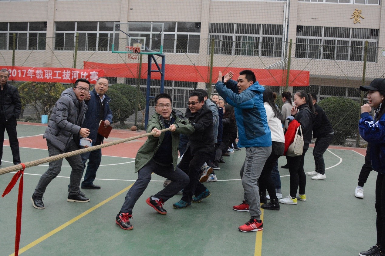 为丰富教师课余文化生活,引导教师积极参加体育锻炼,增强教师的体质,促进各院教师之间的交流,创建和谐、融洽的工作环境。我校于11月29号在金花校区举行教职工拔河比赛,本次比赛共有16支院校教职工代表队伍参加,经过激烈的角逐,我院最终夺得本次比赛的冠军。