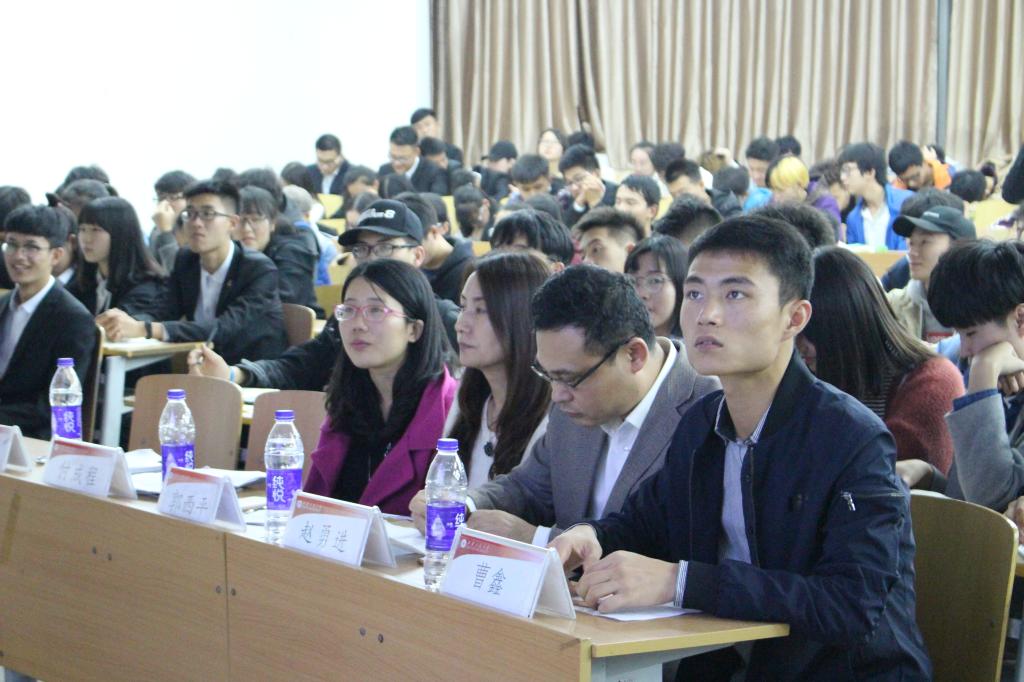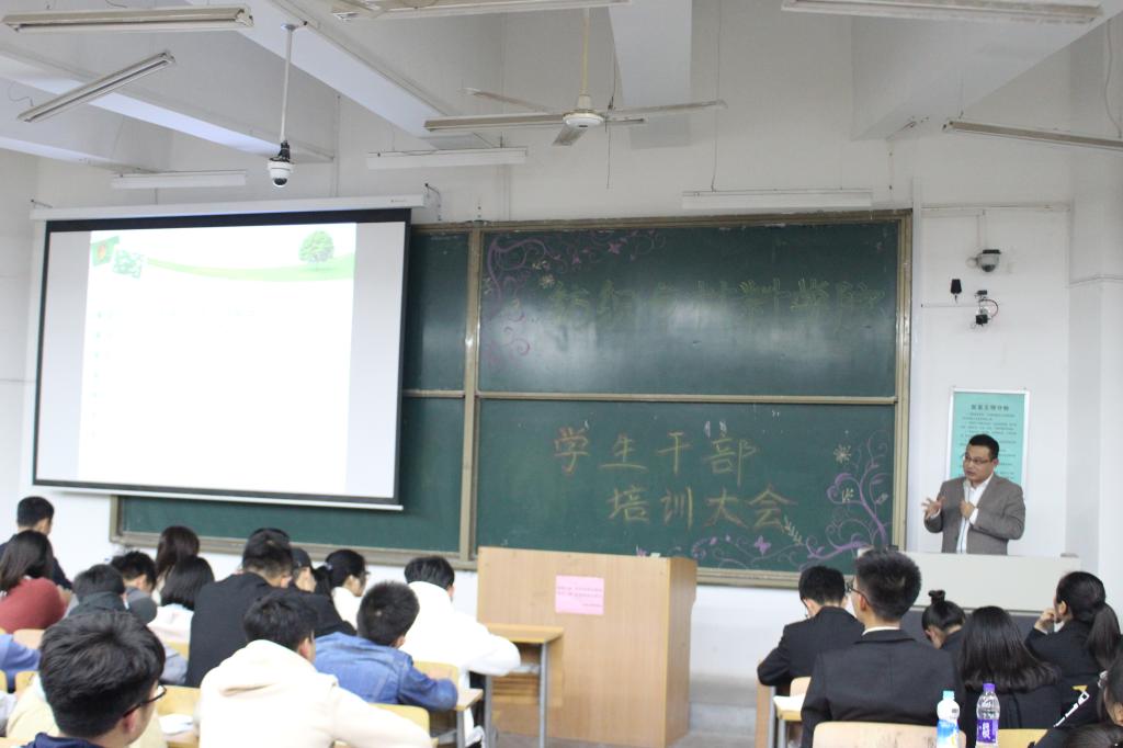 首先,党委副书记郭西平老师重点强调了如何做好一名优秀的大学生干部的问题。建设性的提出了几点要求,首先要将自己培养成德才兼备的学生标兵,具备四干素质,要将智能素质和健康素质并重发展纳入自己的大学规划中,有目的,积极地培养组织协调、表达、团结协作等能力,培养创新精神、奉献精神。在人际关系的处理上,老师强调了学生干部要与老师,与其他干部,与同学间保持平等、互助、真诚、相容等基本原则,把握好得失关系,要积极发挥桥梁作用,榜样作用。四年时光很短暂,老师在演讲结束时送上了一句寄语:“以梦为马,不负韶华。万千世界,唯有时代,取之不尽用之不竭,容得下最大的梦想”。接着,学生工作部主任赵勇进老师向大家介绍了“学生干部的基本工作方法”。赵老师指出“其身正,不令而行;其身不正,虽令不从”,身为学生干部,要自己先认清自己。遇到问题,首先自我批评,辩解只会加负分。要在正确的时间做正确的事,以身作则,有大局意识和团队精神,才有能力成为其他同学的标杆,使集体走向进步。