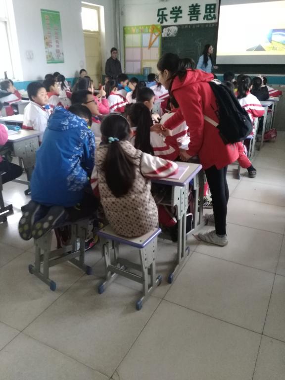 本次宣讲的主题为“生活中的科技”,课程共计一节,干事们同时对四年级1、2、3班进行授课,授课方式也分为两种,分别为课堂讲义和实物展示。首先,由实践部干事在播放PPT的同时,进行提问。整个流程有条不紊,图片的展示,有奖竞猜,快速抢答等环节都调动了每位学生的积极性,也教授了小学生们许多科技知识。临潼小学的同学们听得十分认真,每个人都参与了科学问题的答辩。接着,宣传部干事展示了利用废弃品制作的飞机、坦克,同学们都在认真观摩的同时,也增加了自己对科技的热情。