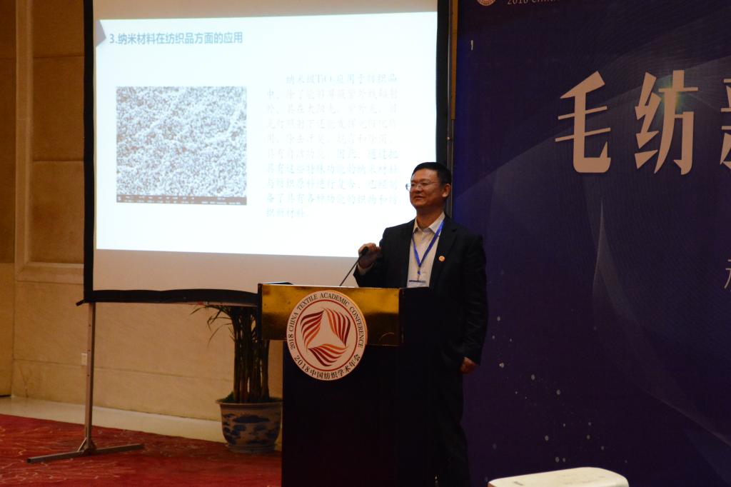王训该教授针对“毛混纺运动服装材料对体味的吸附和释放性能”做了报告,介绍了体味的吸附和释放性能研究的意义和方法,对不同羊毛与其他纤维的混纺比例对体味的吸附和释放能力进行了一系列探讨,证明毛纤维具有很好的排斥异味的特性;刘刚中总工的报告主题为“户外羊毛面料的研发及应用”,围绕运动和功能与结构特性,介绍了利用不同品质和性能的羊毛纤维,开发各类运动、户外服饰面料的应用情况;毛宁涛教授基于多年对羊毛改性与功能化研究的成果,以“未来的羊毛”为主题,引导大家探讨改变羊毛结构扩展羊毛未来应用的研发方向;最后孟家光教授通过“自清洁羊绒衫生产技术研发”讲解了纳米光催化技术应用于羊绒衫自清洁整理所取得的研究进展和应用情况。