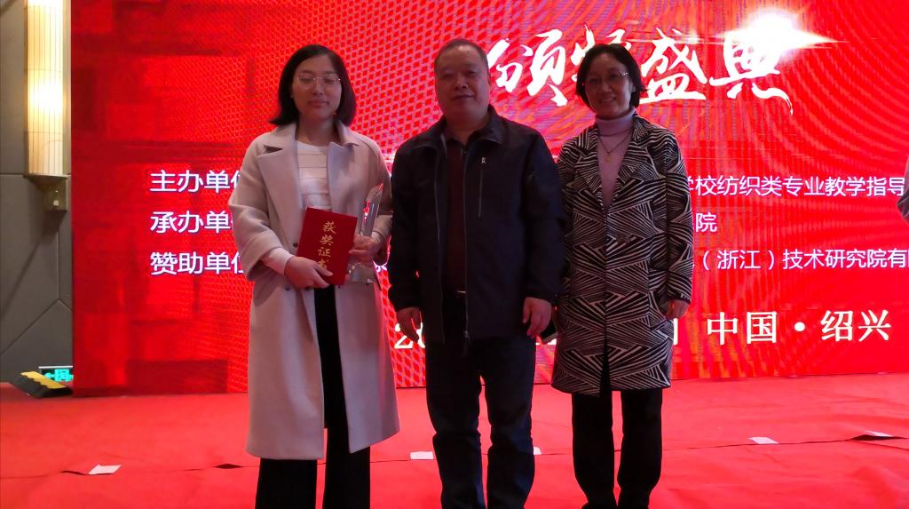 2018年11月10-11日,由中国纺织服装教育学会、教育部高等学校纺织类专业教学指导委员会联合主办的“红绿蓝杯”第十届中国高校纺织品设计大赛颁奖典礼暨纺织工业设计高层论坛在浙江绍兴举行。我校纺织科学与工程学院2015级纺织工程专业的宋晨阳、刘冰、张粒三名同学设计织造的作品《斑驳光影》作品获得“最佳结构奖”,指导教师范立红获“优秀指导教师”荣誉称号,范立红老师撰写的教改论文获“优秀论文奖”。