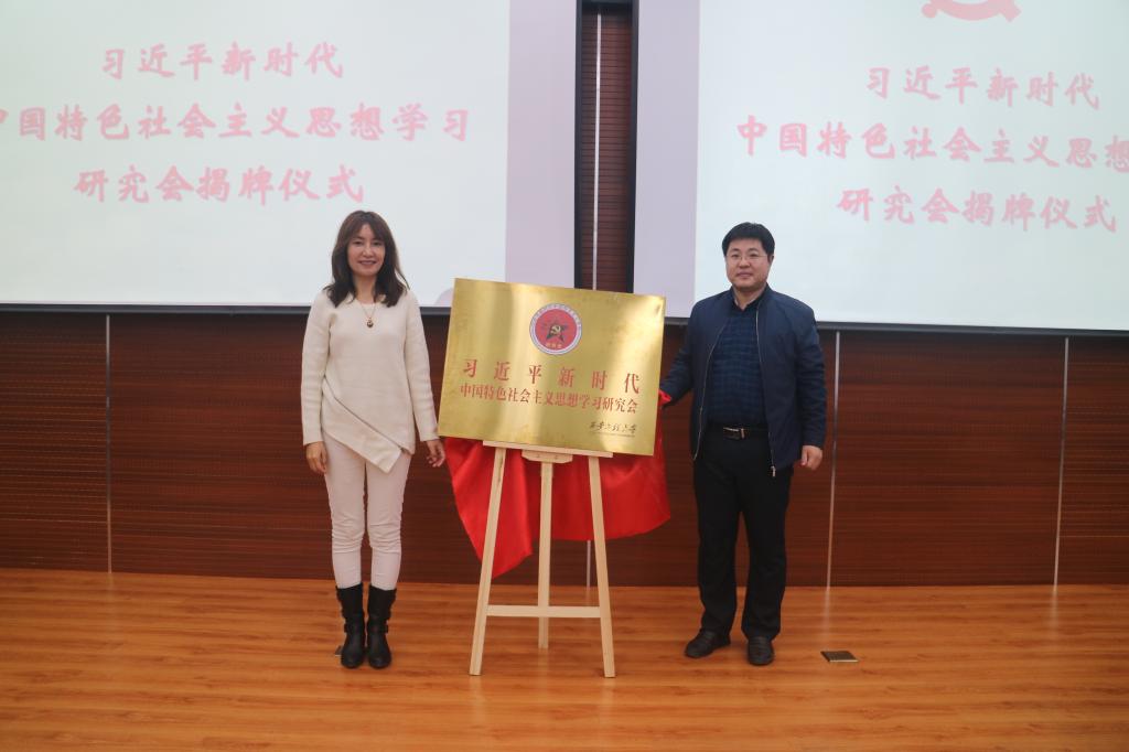 随后,由郭西平老师和郭松老师为习近平新时代中国特色社会主义思想学习研究会揭牌。社团负责人陈耀忠上台介绍了社团的规划,让社团成员对今后的工作有了进一步的了解。