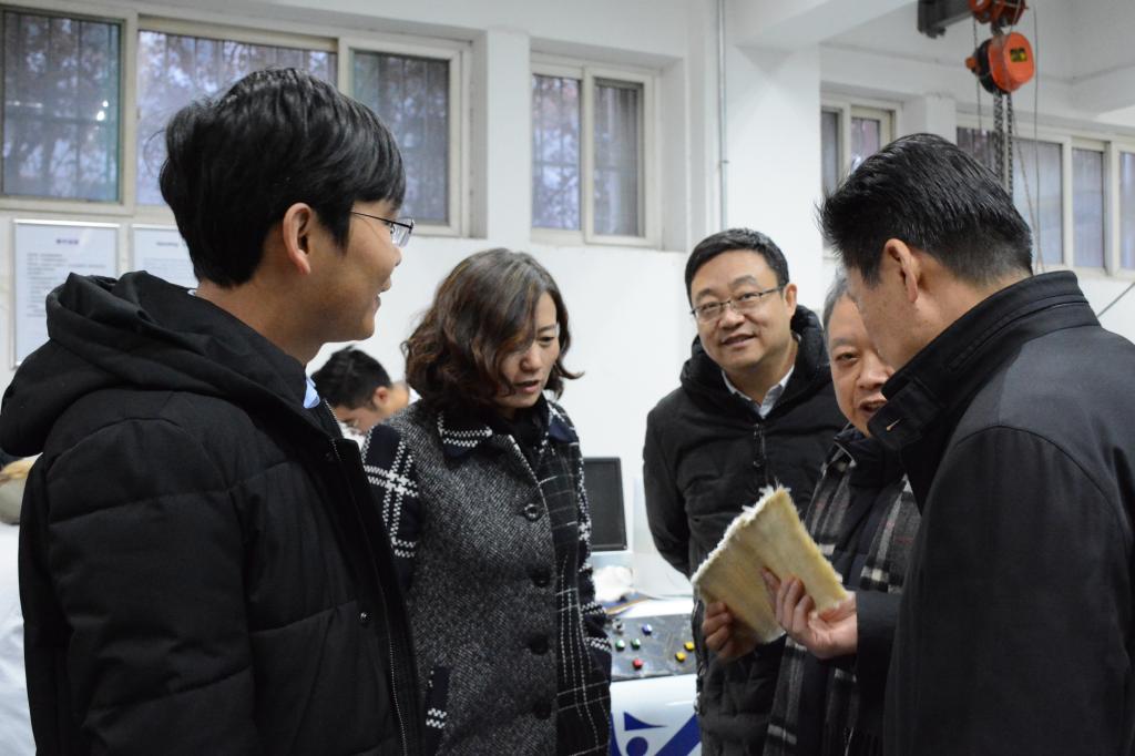会后,解中处长一行三人到纺织科学与工程学院高性能纤维及三维复合材料实验室、纳米纤维设计及制品加工成套技术实验室进行了现场考察,学院副院长刘呈坤、院长助理樊威分别对实验室的运行情况、设备情况和研发的产品进行了详细的介绍说明。(撰稿:岳鹏飞、樊威;审稿:胡小进)