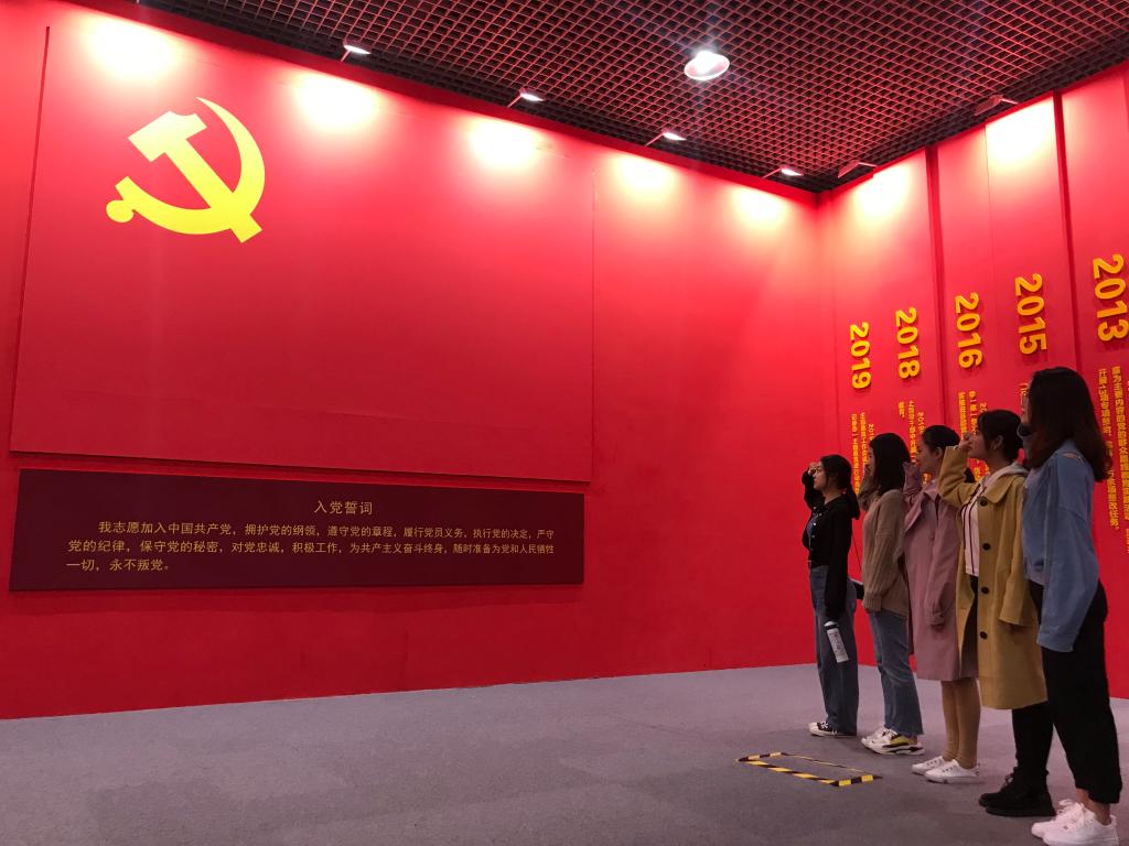 陕西省庆祝中华人民共和国成立70周年成就展位于曲江国际会展中心A展馆,展览设家国情怀、追赶超越、不忘初心三大版块。各位党员走进展厅,认真观看陕西省13个市(区)在党的领导下从抗日战争时期到新时代的快速发展,感受陕西省各行各业在祖国70周年快速发展道路上作出的卓越贡献。各位党员纷纷表示,作为一名学生党员,一定会在现阶段做好自己的本职工作,充分发挥党员的先锋模范作用,认真学习,做好科研,在人生的积累阶段不断给自己“充电”,时刻等待党和国家对自己的召唤。
