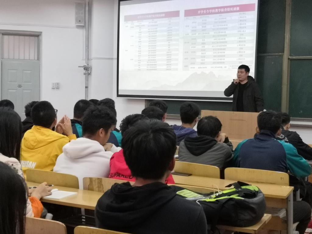 在临潼校区举办的会议上,首先,邓恩征老师就某高校“对杜某等40名学生做退学处理”一事,结合我校已被通报做退学处理的案例,给学生敲响警钟,要求学生端正学习态度、保持朴实的学习作风。其次,他对我院开学至今违反校纪校规受到处分的学生郑重提醒,并作出有效引导。最后,邓老师跟现场同学积极互动,为同学们解答目前存在的专业困惑。同时,他还给2019级新生介绍了我校科技创新类、思想道德素质类、社会实践类活动,呼吁大家多多参与,提升本领。