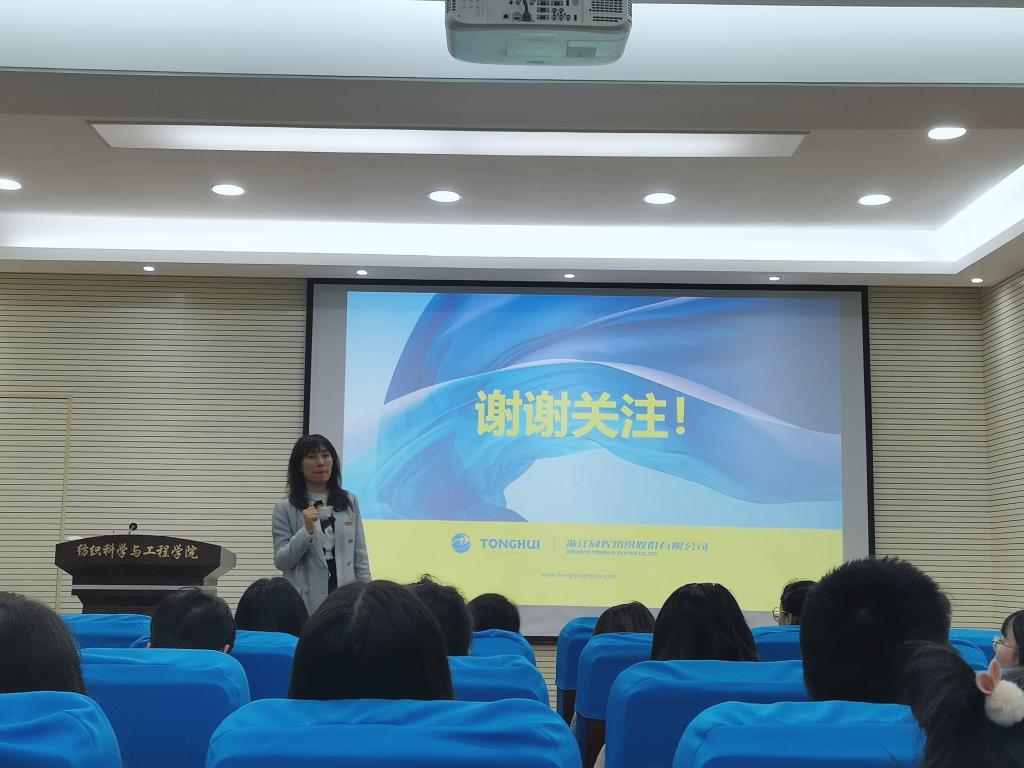 讲座伊始,徐兴良先生与大家进行了暖场互动,以一个职场经验者的身份为大家分享了他的心得体会。首先,他介绍了企业的基本情况,从地理位置到产品设计,让学生对企业有了直观的感受。第二,他从社会对人才的需求角度出发,讲述了如何让学生成长为对社会有用的人,他提到大学生不仅要练就过硬的专业素养,还要有“活到老,学到老”的理念。第三,他分析了纺织行业发展现状,建议在校学生珍惜学习机会,合理规划时间。最后,他就“如何成为人才”提出几点建议:要树立明确的目标、制定合理的计划、主动学习、积极参加各项社会实践活动。宣讲会的最后,他一一解答了同学们的疑惑和问题。