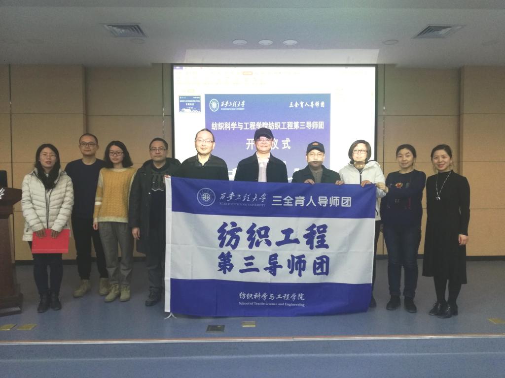 为深入贯彻落实习近平新时代中国特色社会主义思想和党的十九大精神,增强育人工作实效性,构建我校思想教育体系、知识传授体系、人生引领体系三大体系协同配合的高水平人才培养机制,逐步形成全员育人、全过程育人、全方位育人的格局,学校决定在本科生中实施“三全育人导师团”制度。纺织科学与工程学院按照学校相关工作要求,以学科相近、专业相似的建团原则,成立了7个导师团,导师团成员由学生辅导员、学生班主任、教学教辅等管理人员、专业课教师、心理健康教育教师、思想政治理论课教师、知名校友等社会精英担任,导师团设团长(名誉团长、执行团长)、秘书及由学生骨干担任的导师团助理。近期,纺织学院各导师团举行了隆重的开团仪式和系列教育活动。