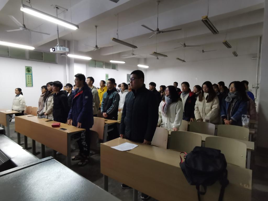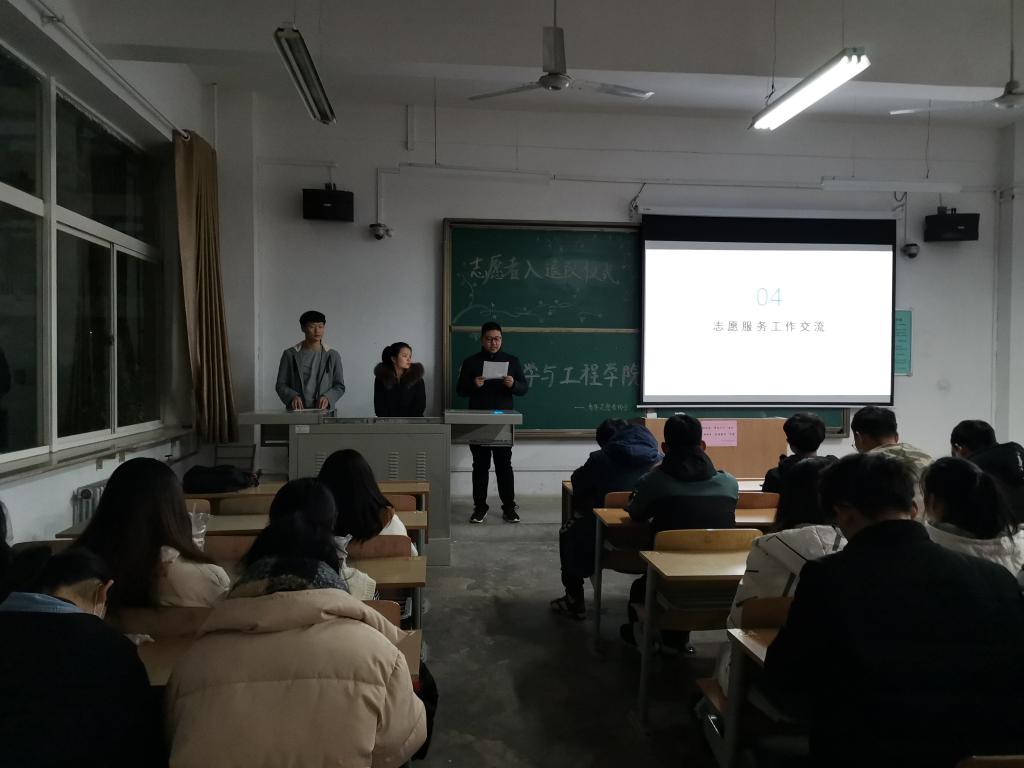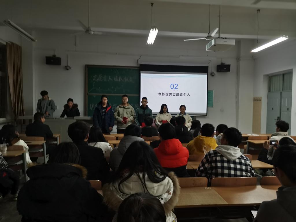 2020年1月2日,纺织科学与工程学院在临潼校区A-122教室举行2019年青年志愿者入退队仪式暨志愿者表彰大会。学院团总支老师付成程、学生会副主席姚钧译以及2019级注册志愿者参加此次大会。