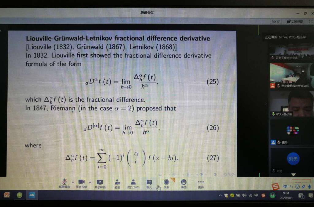 开幕式结束后,会议围绕数学方法与应用主题,何吉欢教授、中国矿业大学的杨小军研究员、渤海大学张盛教授等分别作了题为《分数阶微积分学术前沿与应用基础》《分数阶微积分学的历史溯源和未来研究方向》《时间分数阶KdV方程及其动力演化》的精彩报告,阐述了如何将最新的数学成果和实际进行结合。