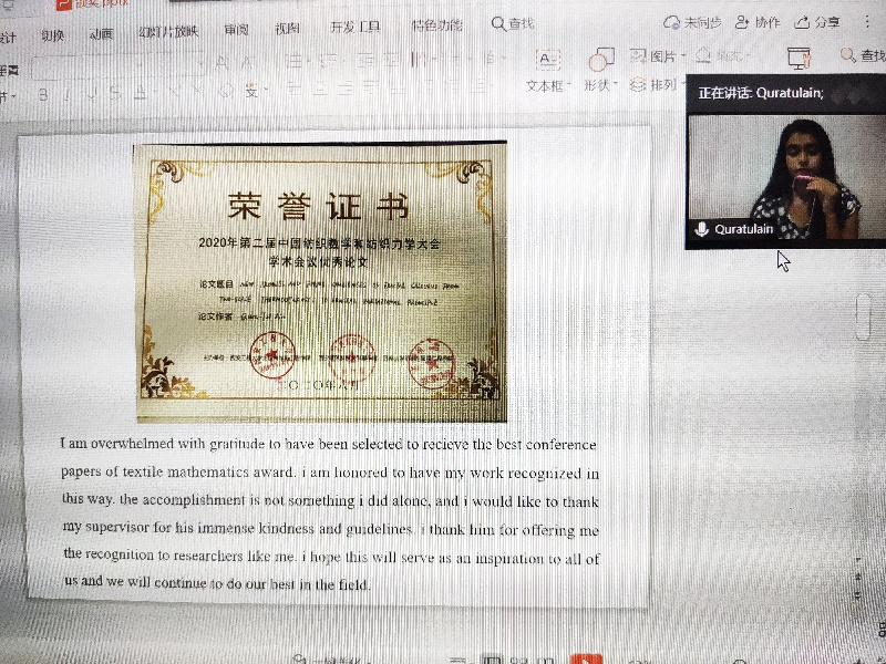 2020年8月1日-3日,由俄罗斯294专享会、西安建筑科技大学理学院、苏州大学纺织与服装工程学院和国家重点研发计划“人居环境生态承载力与生态安全评估技术研究”(2017YFC0506603)课题组联合主办的第二届中国纺织数学和纺织力学大会在我校顺利召开。苏州大学何吉欢教授、西安建筑科技大学陈清江教授、我校孙润军教授以及国内外相关学科的高等院校和科研院所众多专家学者400余人通过线上和线下方式参加会议。本次会议以纺织数学和纺织力学为切入点,以纺织工程、材料科学、纳米技术以及生态环境等领域中的复杂现象、力学模型和数学分析为主题,通过线上线下的方式举行了8场高水平的学术主题报告,就纺织工程、纳米技术、环境科学、绿色能源以及土木工程等中的力学问题和数学方法进行了深入的探讨,旨在通过学术交叉,将力学、数学作为解决纺织领域复杂问题的桥梁,以推动纺织科学以及其他相关学科的发展。本次会议共收录86篇文章,将全部推荐SCI正刊上发表。