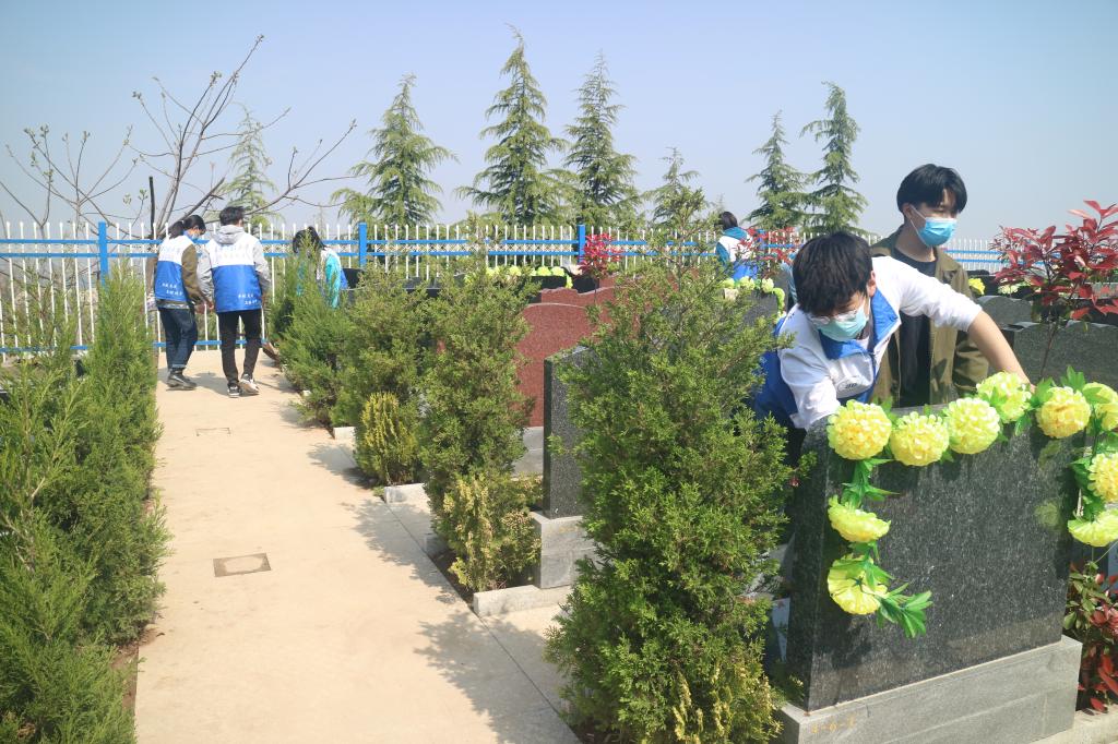 学院青协组织志愿者前往临潼烈士陵园进行扫墓,感受革命英烈的爱国情怀,缅怀先人的丰功伟绩。志愿者们分成八组,在指定区域进行擦拭和清扫。扫墓现场,志愿者们走在一排排的墓碑之中满怀尊敬与哀思,擦拭墓碑两侧的灰尘,清扫通道上的落叶。志愿者们在烈士墓碑前缅怀沉思,并献上自己亲手做的小白花,祭奠革命先烈。整个活动之中,志愿者们认识并了解了许多优秀的革命先烈,明白先烈们走过的是一条不断奋斗的路,激发了志愿者们用心思考当代学生肩上的重任。