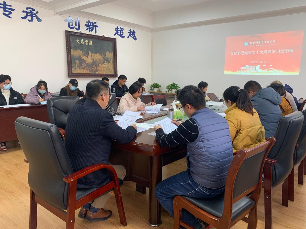 为深入学习宣传贯彻党的二十大精神,12月2日,纺织科学与工程学院党委在纺织楼404会议室举办党支部书记党的二十大精神学习读书班学习研讨会。学院党委书记李伟、党委副书记朱宇军及全体党支部书记参加本次会议,会议由李伟主持。