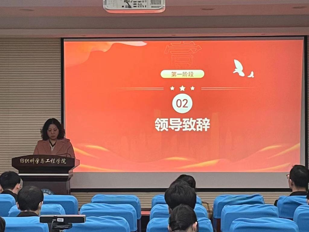新当选的第五届学生会主席团成员张鑫宇向学院全体青年发出了倡议。全院青年要坚定理想信念,不忘求学初心,牢记肩上使命,能吃苦、肯奋斗,勇担民族复兴大任,在青春的赛道跑出西纺青年的风采。