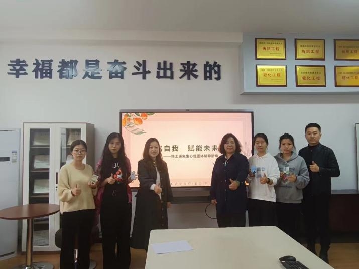 为加强博士研究生同学之间的交流,提升学生心理健康水平,2023年4月13日,纺织科学与工程学院在金花校区心理辅导站举办首期“博”出“心晴”心理关爱团辅活动,活动以“丰富自我赋能未来”为主题,由学院党委副书记朱宇军主持,大学生心理健康教育与咨询中心教师、启明星生涯工作室主持人高黎带领博士生开展心理关爱团辅活动。