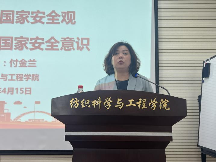2023年4月15日,在第八个全民国家安全教育日到来之际,为落实习近平总书记关于全面加强国家安全教育的重要指示要求,贯彻总体国家安全观,增强在校大学生国家安全意识,纺织科学与工程学院特邀陕西省秦岭北麓地区人民检察院检委会专职委员、四级高级检察官、陕西省第二批检察业务专家付金兰在金花校区姚穆报告厅为学院师生进行国家安全主题宣讲。学院党委副书记朱宇军主持会议,辅导员及100余名研究生、本科生参加会议。