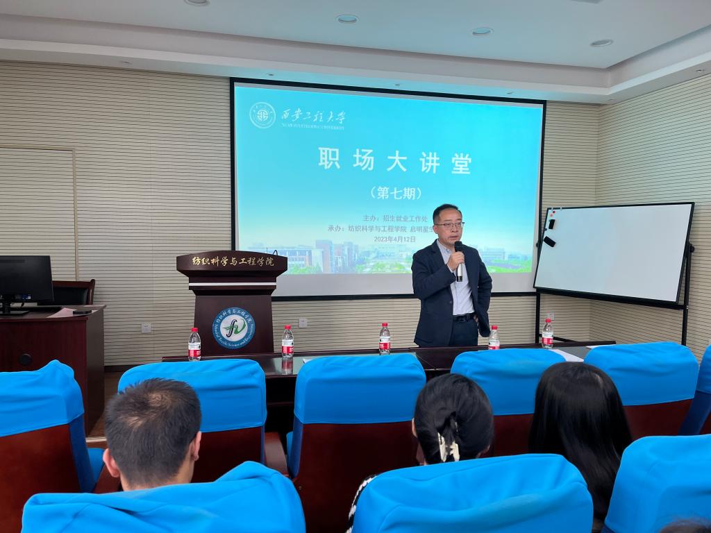 为帮助学生解决就业过程中的困难,为学生提供有针对性的个性化就业指导,2023年4月12日,纺织科学与工程学院在金花校区姚穆报告厅举办第七期职场大讲堂之“共话就业”,邀请校招生就业工作处副处长、高级工程师付刚担任主讲人。本次活动由招生就业工作处主办,纺织学院、启明星生涯工作室共同承办。学院党委副书记朱宇军,学院辅导员,2023届本科生、研究生代表共80余名学生参加活动。