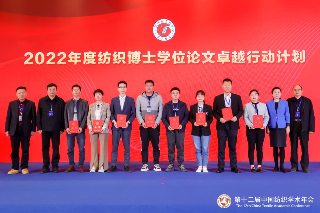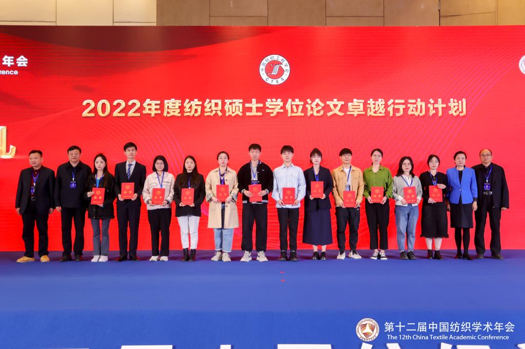 颁奖仪式上,宣布了2022中国纺织工程学会学术奖获奖名单。中国纺织工程学会副理事长、我校原副校长李鹏飞教授受邀上台为纺织博士、硕士学位论文卓越行动计划2022年入选学位论文作者颁发证书。我校景军锋教授荣获2022纺织学术带头人称号;研究生陈文豆的硕士学位论文《棉-TiO2-MoS2(BiFeO3)光催化复合材料的制备》入选2022年纺织硕士学位论文卓越行动计划;绿色微胶囊包封技术与应用研究基地获授牌中国纺织工程学会科研基地。
