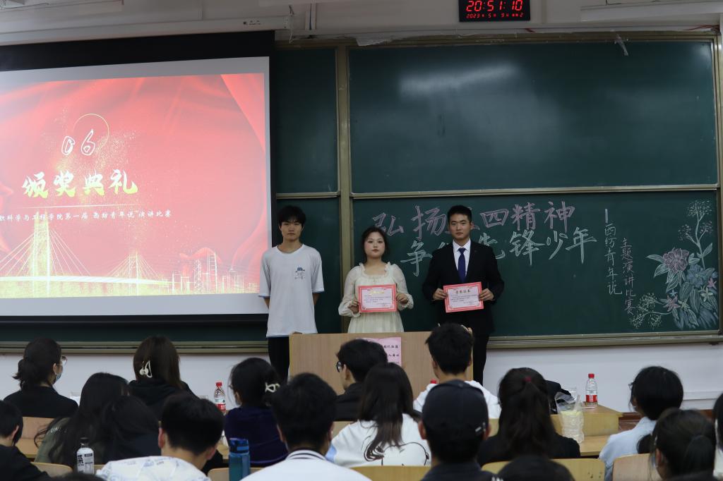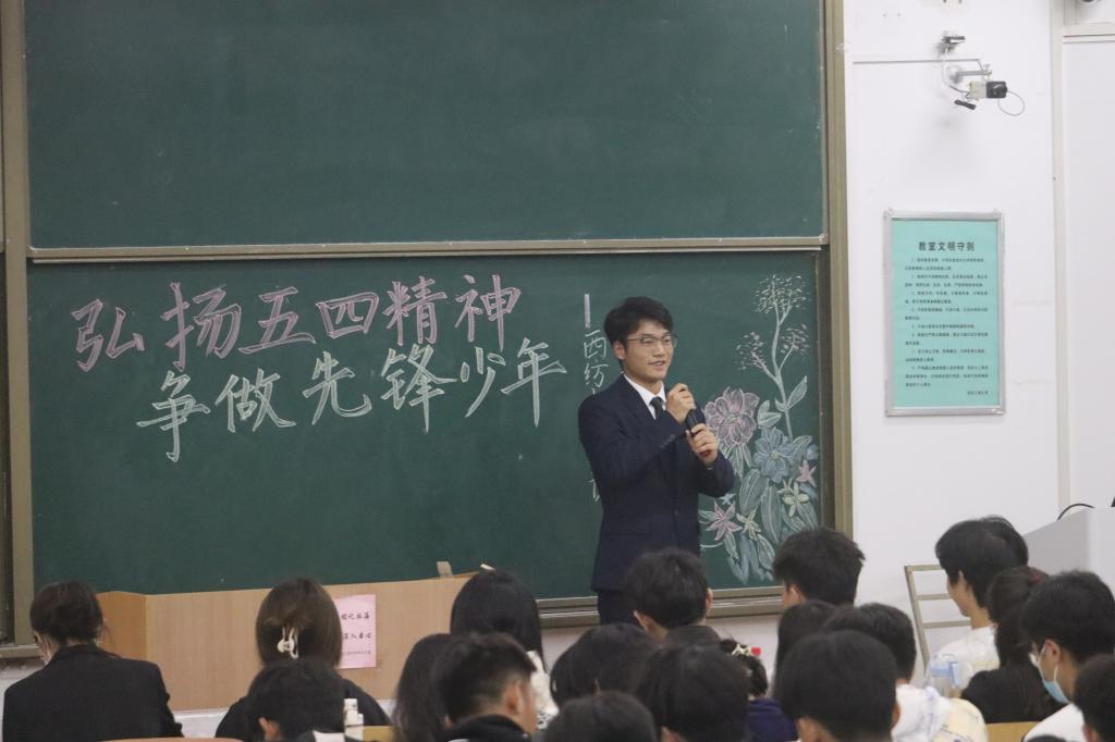 首先,主持人介绍活动背景。活动旨在激励新青年们深入学习习近平新时代中国特色社会主义思想,为实现中华民族伟大复兴而努力拼搏,鼓励青年一代为继续传承和发扬以“爱国主义”为核心的五四精神,当踔厉奋发,不懈努力。接着,在场学生观看了五四青年节的宣传短片后,参赛选手开始演讲。