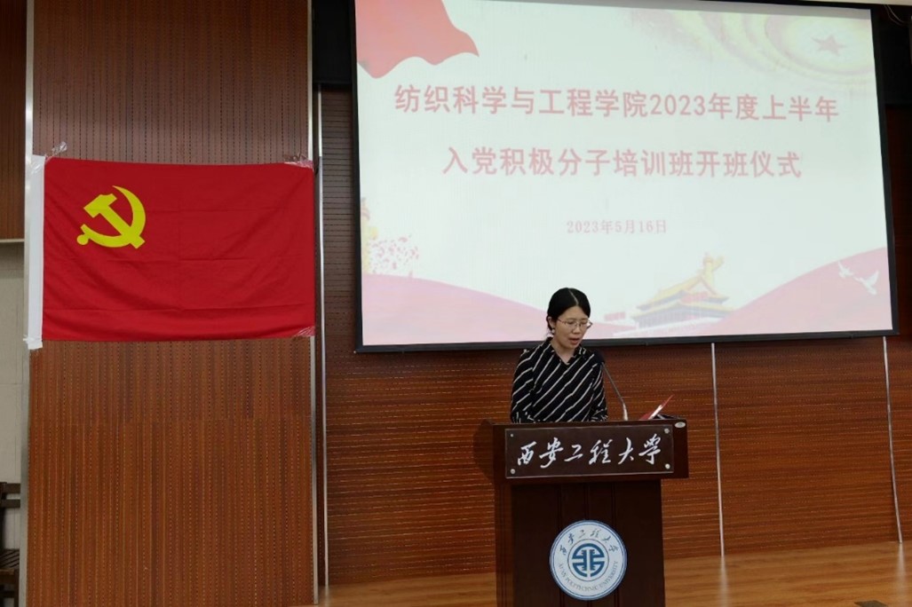 伴随着雄壮激昂的国歌声,开班仪式正式开始。首先,付成程向入党积极分子说明了举办本次入党积极分子培训班的重要性,强调入党积极分子要端正入党动机,树立共产主义远大理想。接着,朱宇军宣读了《俄罗斯294专享会关于举办2023年上半年入党积极分子培训班的意见》。学员代表2022级纺织工程卓越02班董涵同学表态发言,她表示将珍惜培训机会,提升自身能力,服从组织管理,遵守培训纪律,端正入党动机,发挥模范作用,更加坚定申请入党时的初心,在学习生活中勇于创新、甘于奉献、精益求精,同时作为纺织人积极传承“梦桃精神”,让“梦桃精神”进一步发扬光大。