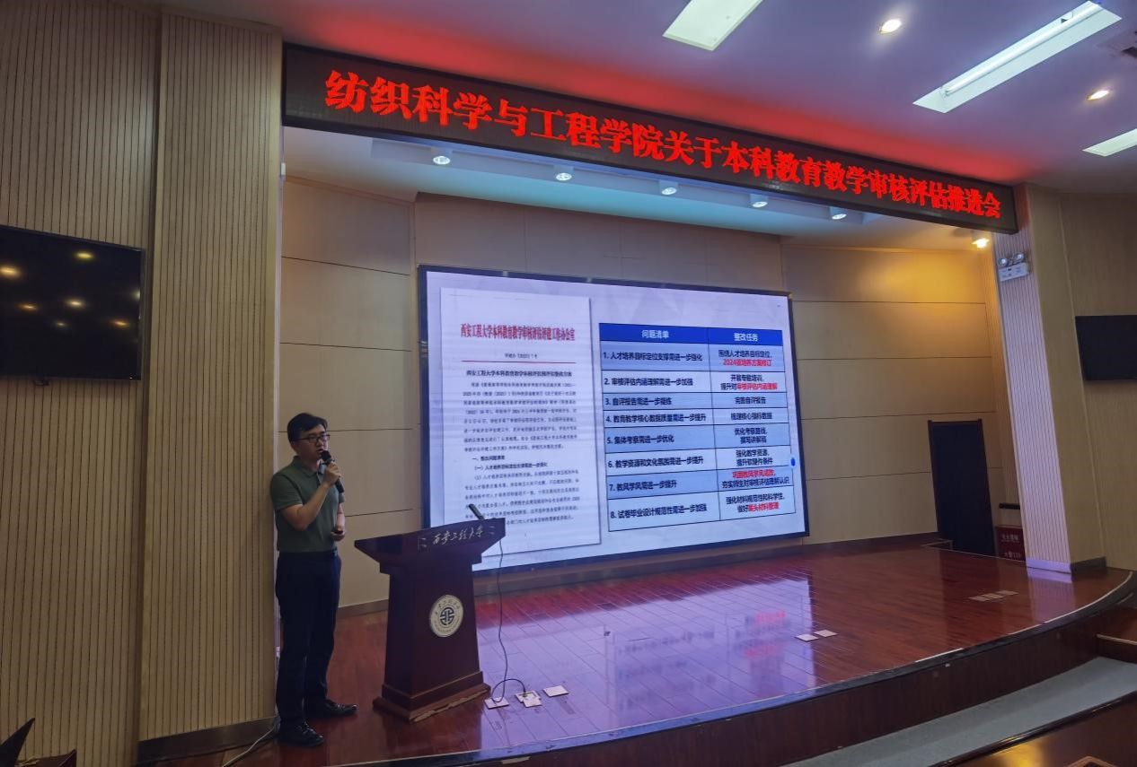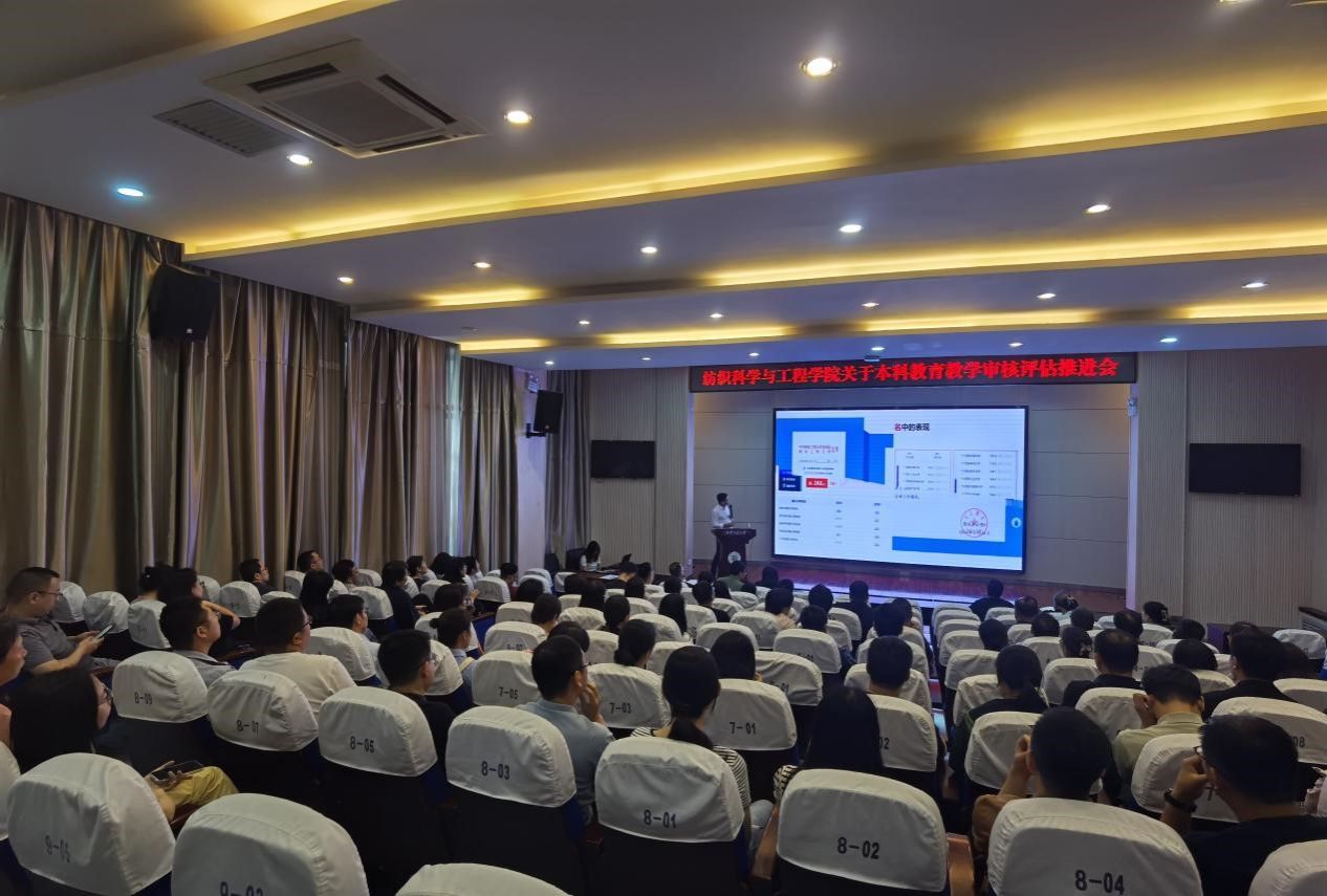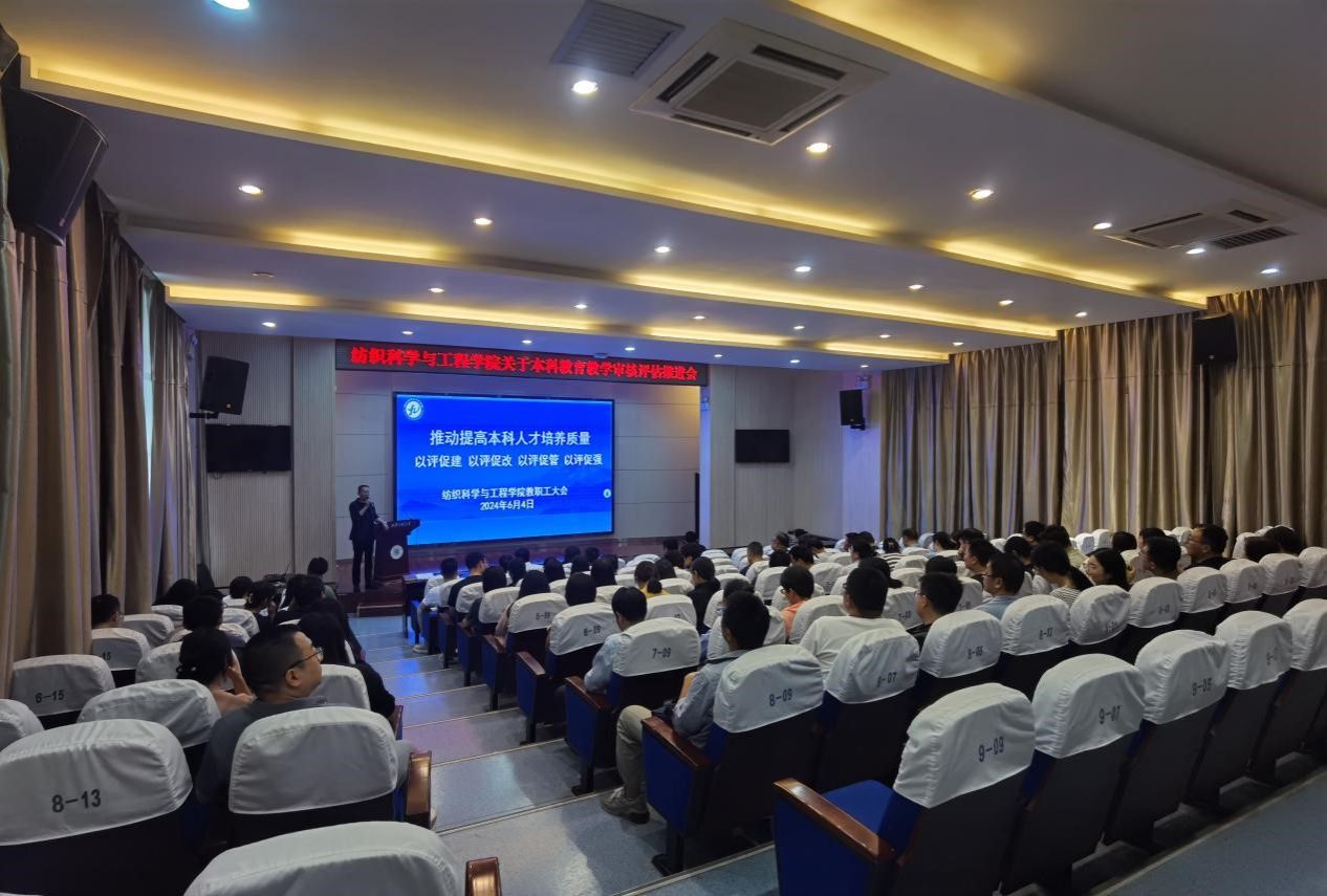 为进一步深入贯彻党的二十大关于教育强国、科技强国、人才强国的重大决策部署,充分发挥高质量党建引领高质量发展作用,同时为贯彻落实教育部和学校关于本科教育教学审核评估的文件精神和工作要求,进一步做好迎接新一轮本科教育教学审核评估各项准备工作,2024年6月4日下午,纺织科学与工程学院在金花校区西纺报告厅召开学院全体教职工大会。学院党政领导班子及全体教职工参加了会议,会议由学院党委书记李伟主持。
