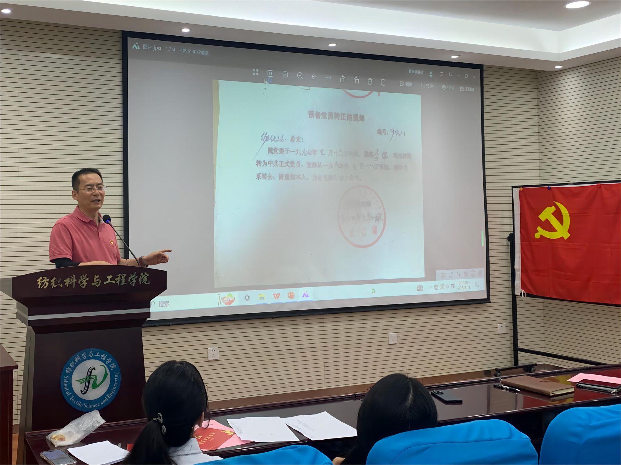 随后,染整研究生党支部董涧琨同志代表正式党员发言。她表示,作为一名正式党员,要充分发挥党员的先锋模范作用,时刻保持党员的先进性,同时树立起终身学习的观念,坚持不断提升自己的思想政治修养,为党和国家发展贡献自己的青春和力量。随后,纺材研究生党支部薛钰同志代表新发展党员发言,她表示,要以共产党员标准严格要求自己,学习并践行“梦桃精神”,为党的建设做贡献。