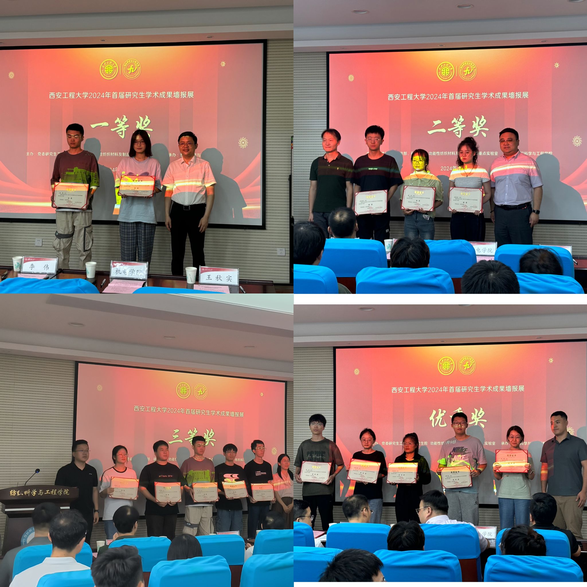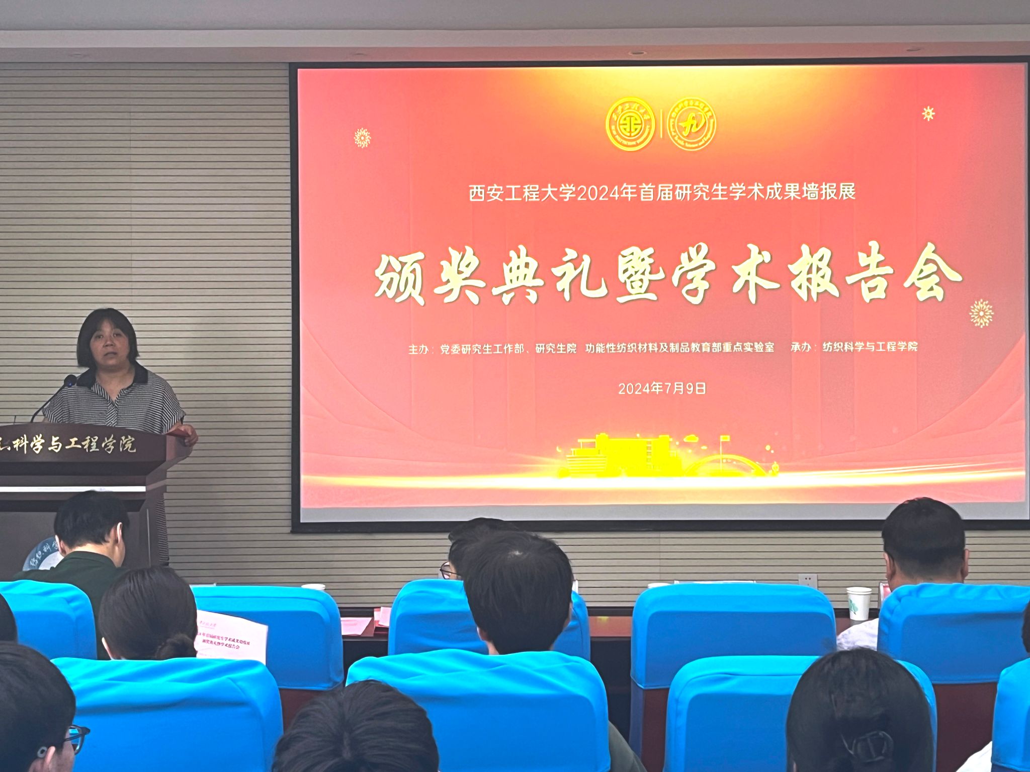 7月9日,我校在金花校区纺织楼姚穆报告厅举办2024年首届研究生学术成果墙报展颁奖典礼暨学术报告会。本次活动由党委研究生工作部、研究生院,功能性纺织材料及制品教育部重点实验室主办,纺织科学与工程学院承办。