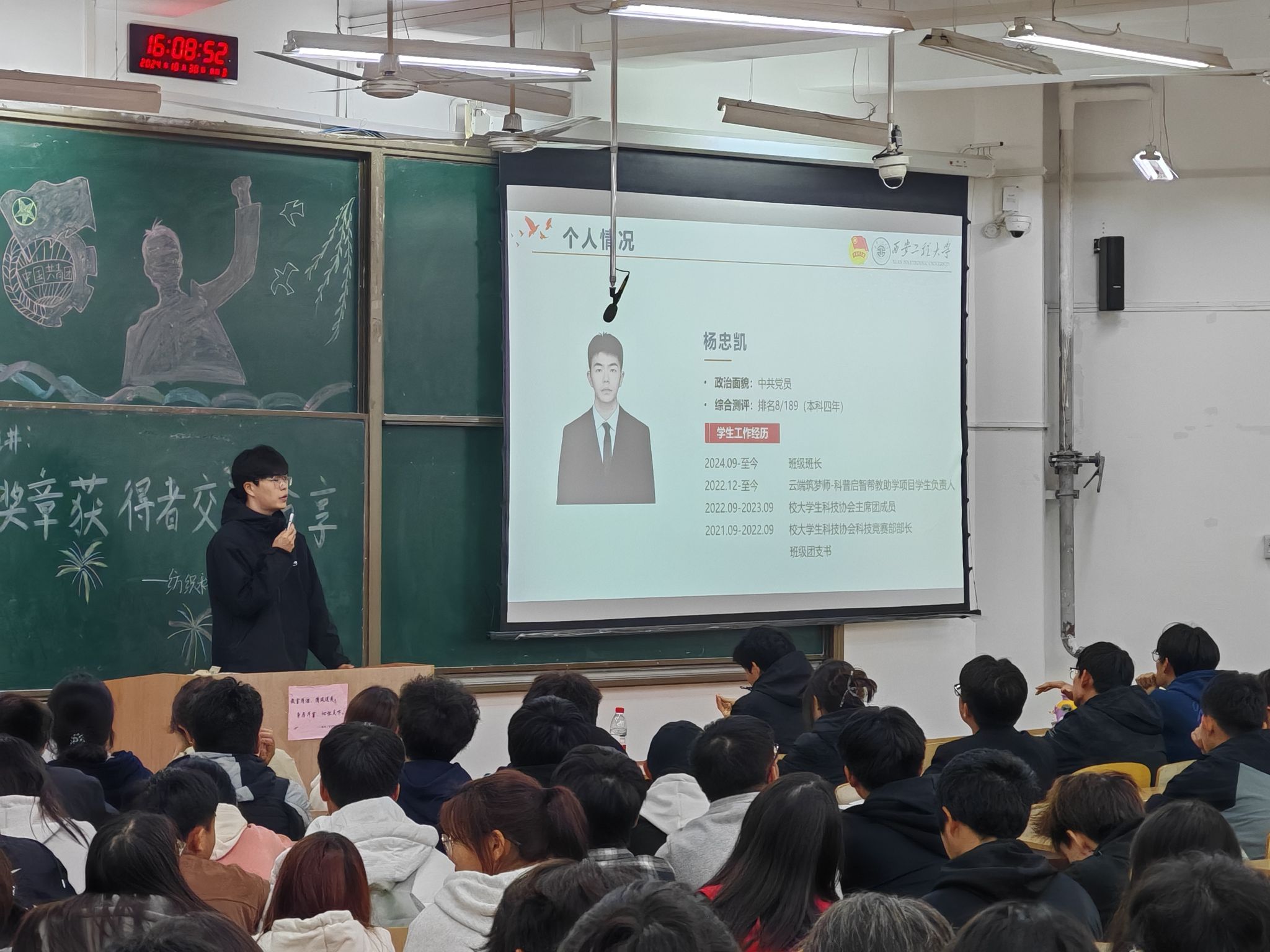 两位优秀学生的分享,不仅让同学们看到了青春的光彩与责任,更激发了他们对未来的憧憬与追求。杨忠凯的专业精神和社会责任感,范大程的活力与拼搏精神,都成为了同学们学习的榜样。
