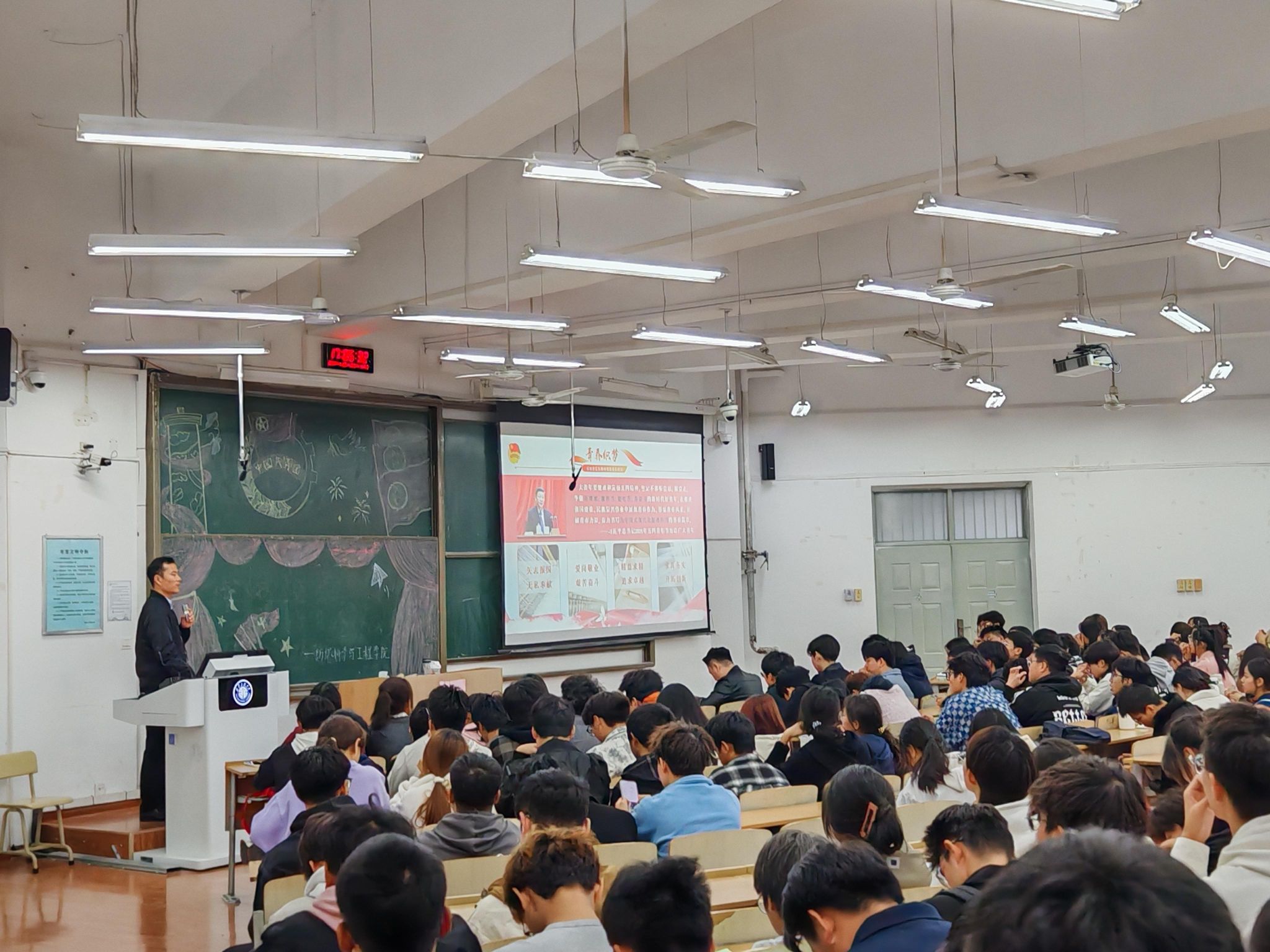 为进一步坚定广大青年听党话、跟党走的政治信念,在强国建设、民族复兴的历史潮流中确立正确的人生目标,为一生的奋斗奠定基石。10月23日,纺织科学与工程学院举办了一场别开生面的团课学习,本次团课以线上线下相结合的方式展开,吸引了学院2024级全体本科生、研究生的积极参与,由学院团委书记曹鑫主讲。