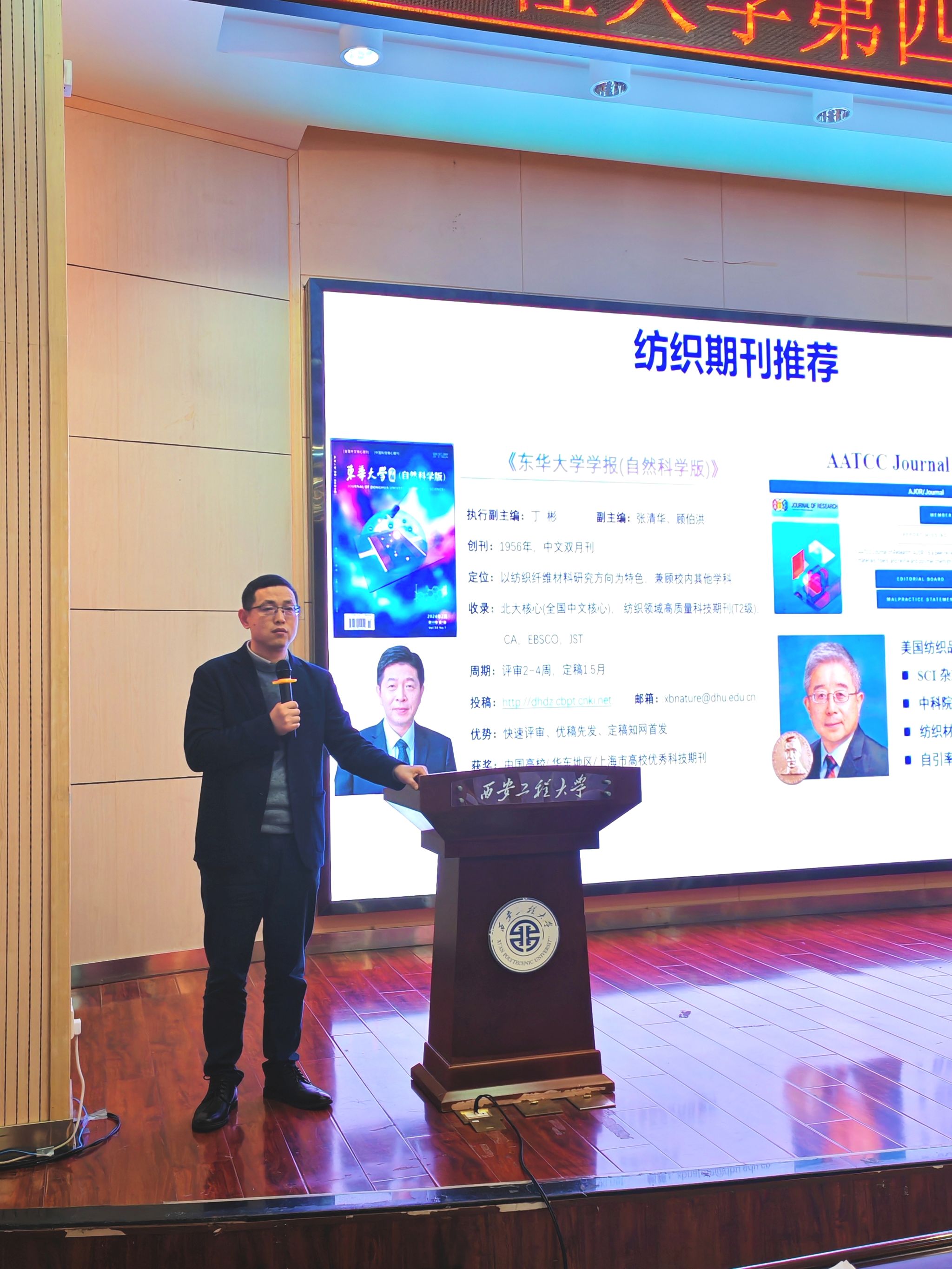 2024年10月31日,我校在金花校区西纺报告厅举办第四十五期经纬学术沙龙。本次活动由人事处主办、纺织科学与工程学院承办,活动邀请东华大学纺织学院副院长许福军教授/博导作题为《三维纺织结构复合材料电磁学性能及其电子器件开发》的学术报告,并就自然科学基金申报工作进行了交流。会议由纺织科学与工程学院院长孙润军教授主持,学院170余名师生参加了此次活动。