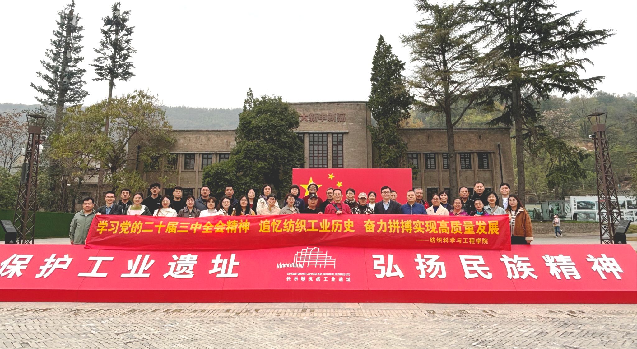 2024年11月10日,纺织科学与工程学院组织教工党员赴陕西省宝鸡市开展“学习党的二十届三中全会精神 追忆纺织工业历史 奋力拼搏实现高质量发展”主题党日活动。学院党委书记李伟、副院长师文钊、各党支部书记及教工党员代表40余人参加了活动。