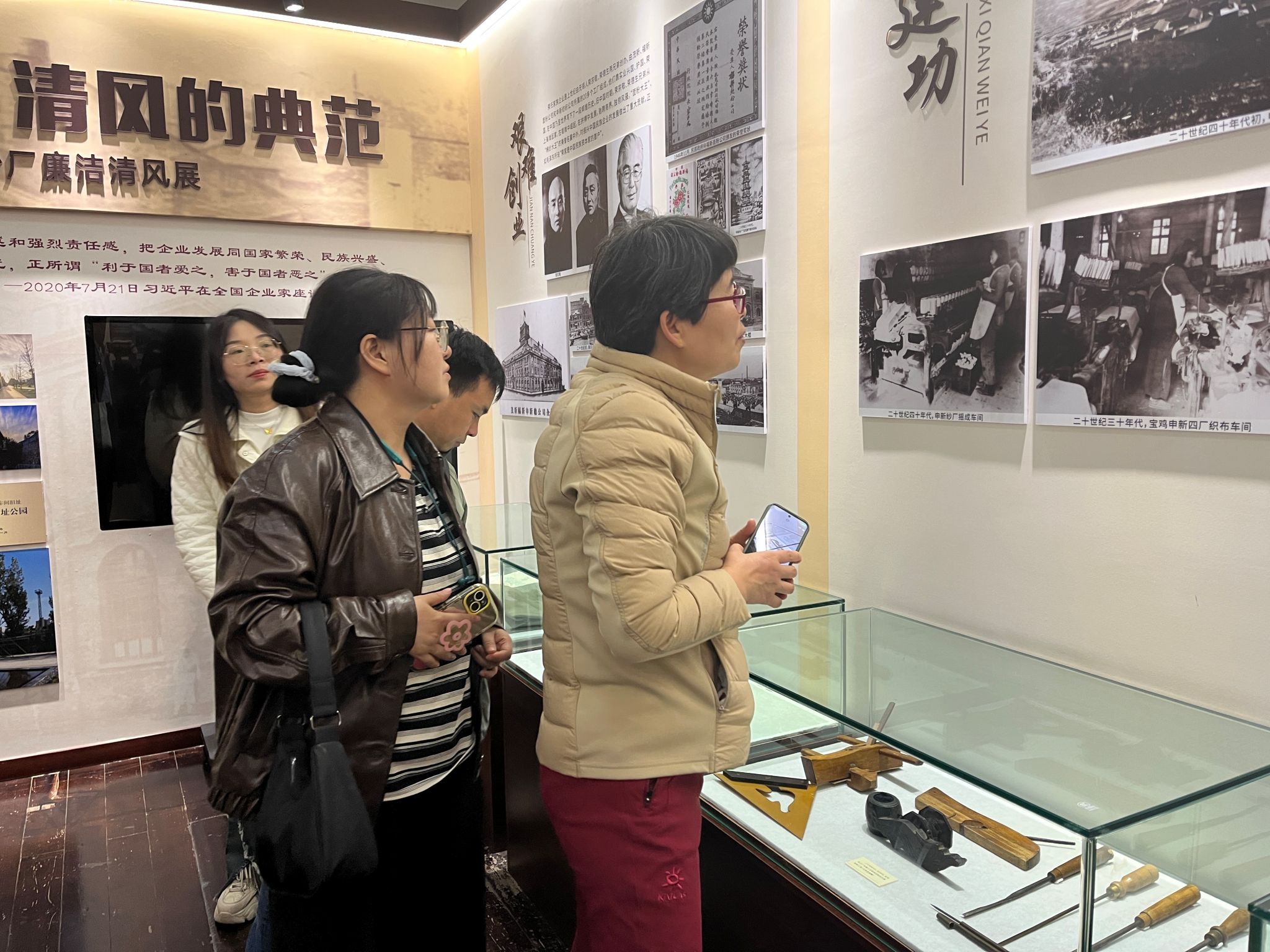接着,党员们到长乐塬抗战工业遗址见证了工业发展的历史变迁。参观过程中,党员们看到了古老的纺织机械设备、保存完好的厂房建筑以及珍贵的历史照片与文献资料。从传统的纺纱机到织布机,这些锈迹斑斑却承载厚重历史的器械,无声地诉说着往昔纺织业的繁荣盛景。讲解员详细介绍了该纺织工业遗址的发展历程,从创立之初的艰辛,到兴盛时期的辉煌,再到面临时代变革时的转型与坚守,党员们深刻感受到老一辈纺织人艰苦奋斗、也对新时代纺织行业的创新发展与责任担当有了更多思考。党员们还参观了陕西省廉政教育基地——宝鸡市廉政教育展馆和宝鸡市廉政文化主题——家风园。