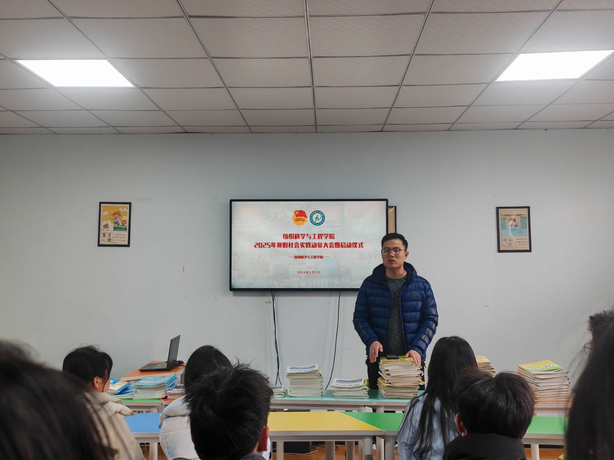 为深入学习宣传贯彻习近平新时代中国特色社会主义思想和党的二十大、二十届三中全会精神,贯彻落实习近平总书记关于青年工作的重要思想,引导和帮助广大青年学生上好行走的大思政课,在社会课堂中“受教育、长才干、作贡献”。1月3日上午,纺织科学与工程学院在临潼校区举办2025年寒假社会实践活动动员大会暨出征仪式。学院团委书记曹鑫、学院社会实践中心负责人和各实践队负责人共30余人参加活动,活动由曹鑫主持。