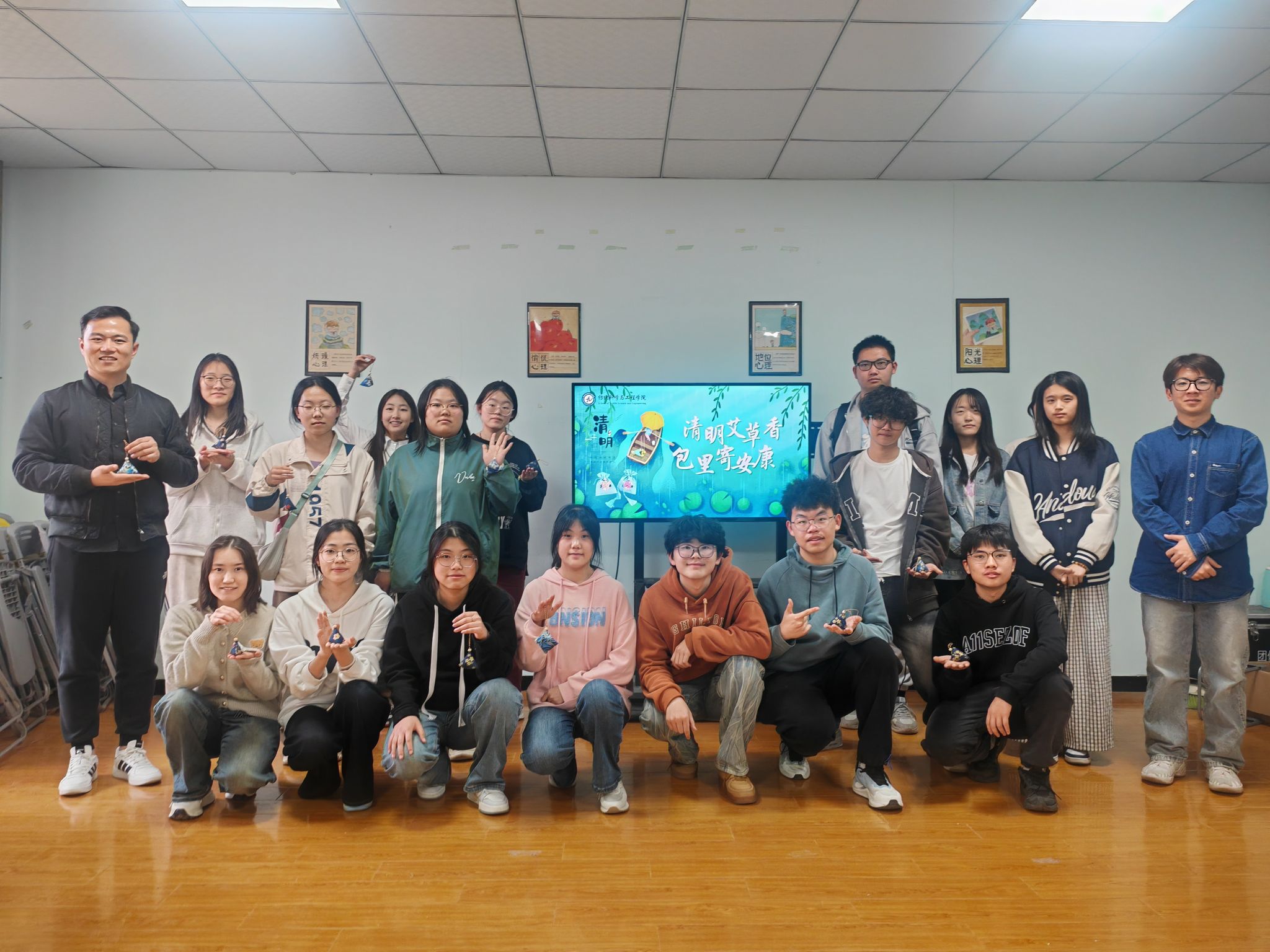 4月3日,行政楼131室飘散着艾草清香,学院团委开展的“清明艾草香,‘包’里寄安康”民俗文化体验活动将非遗传承转化为可触可感的实践课堂。活动创新采用“文化解码+技艺传承”双轨模式:一方面通过演示文稿展示艾草脉络,解读其“辟邪纳福”的文化语义;另一方面特别设置手工制作环节,在工作人员指导下,从穿针引线到填充艾草,学生们学习了多种针法和填充技巧。活动现场,50余名学生完成了个性化香包制作,既有融入现代设计的十二生肖香囊,也不乏复原《楚辞》记载的古典款式。在成果展示区,带着体温的手作香包充分展示了传统文化的独特魅力。