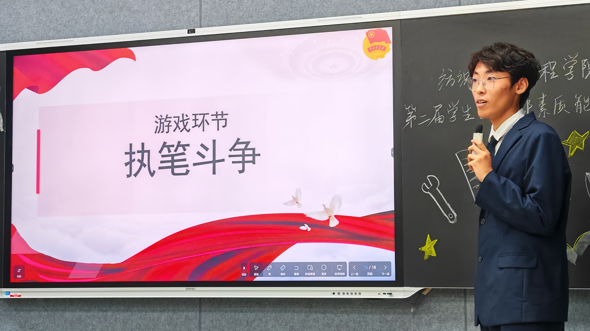 为加强学院学生团干部队伍建设,推动学院共青团工作和思想政治工作高质量发展,5月19日、20日晚,纺织科学与工程学院在临潼校区教学楼举办“青春为中国式现代化挺膺担当”第二届学生团干部素质能力大赛。本次大赛以主题微团课讲授与理论知识测试相结合,学院2024级全体团干部参加比赛。