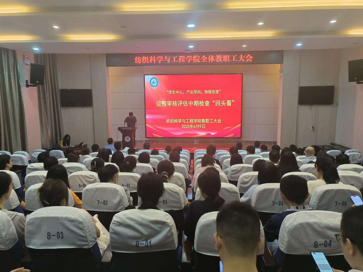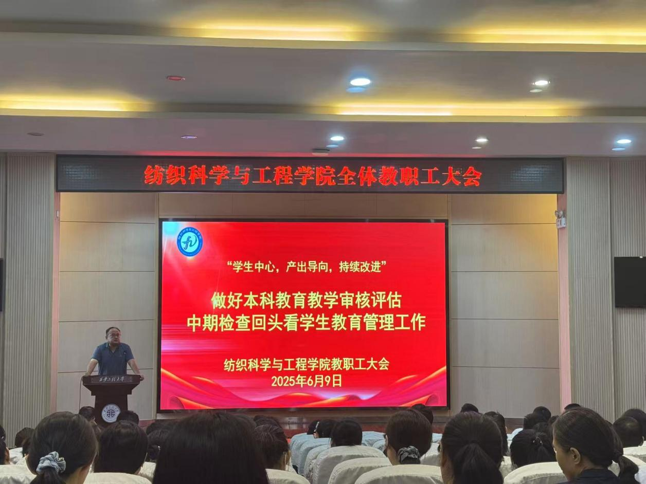 为扎实推进本科教育教学审核评估整改工作,以最佳状态迎接专家组进校考察。6月9日下午,纺织科学与工程学院在西纺报告厅召开迎接本科教育教学审核评估中期检查“回头看”全体教职工大会。学院党委书记李伟、副院长刘哲(主持日常工作)、副院长张鹏飞、院长助理王秋实、姚一军及全体教职工参会。会议由党委书记李伟主持。