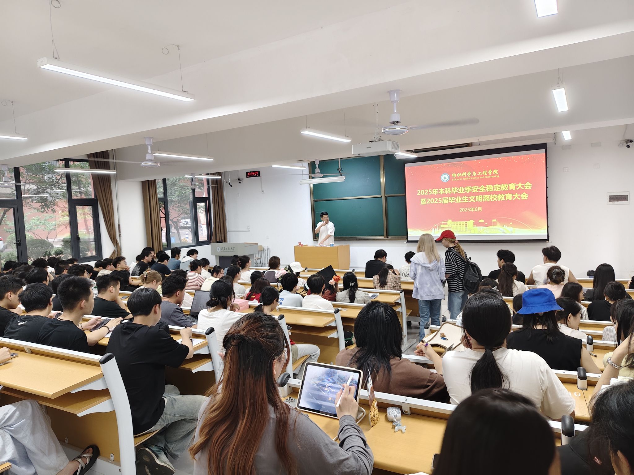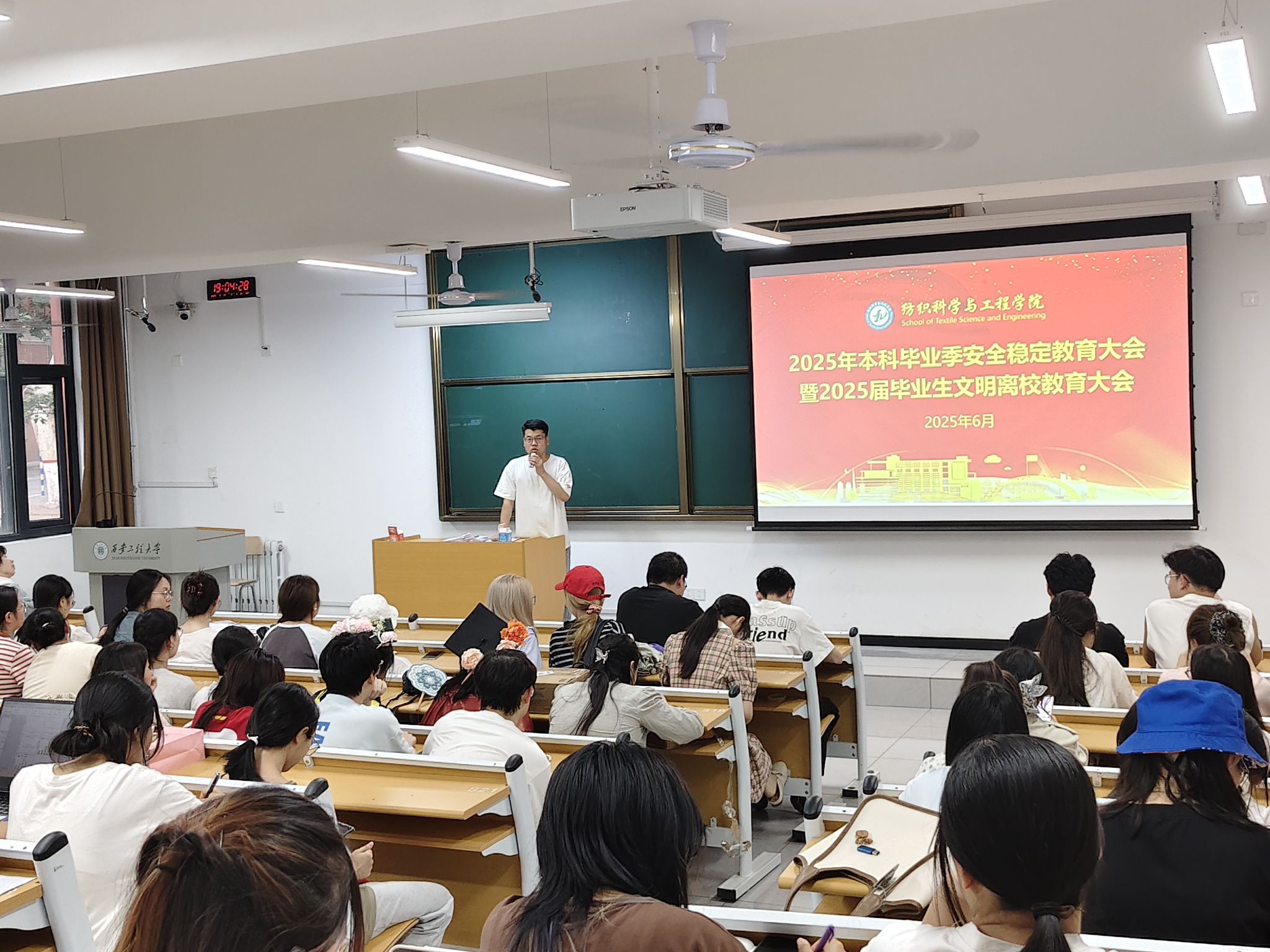 2025年6月11日下午,纺织学院2025届本科毕业生安全稳定教育暨文明离校教育大会在金花校区教学主楼101教室召开。毕业班辅导员洪小洋及全体2025届本科毕业生参会。