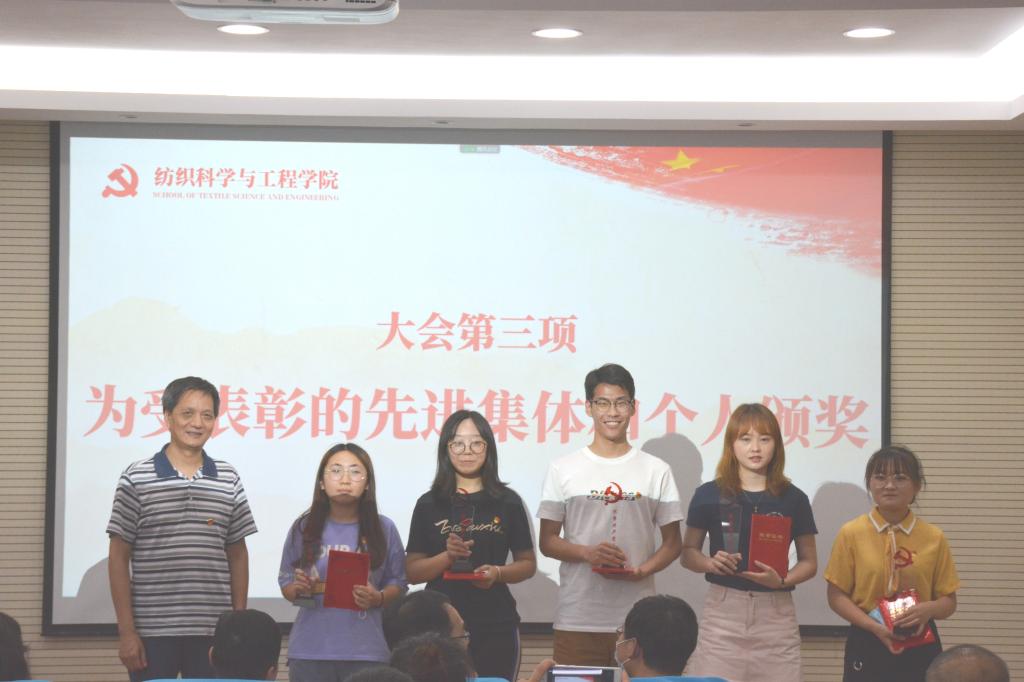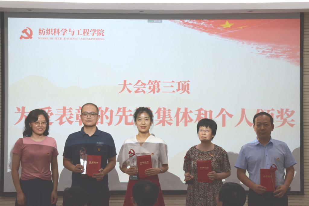 6月30日下午,纺织科学与工程学院党委在金花校区姚穆报告厅采取线上线下结合的方式举办了庆祝建党99周年“优秀共产党员、优秀党务工作者、先进党支部”表彰大会暨重温入党誓词仪式。学院党委领导班子成员、党支部书记以及受表彰的优秀共产党员、优秀党务工作者、先进党支部代表和新发展党员代表参加活动。大会由学院党委副书记郭西平主持。