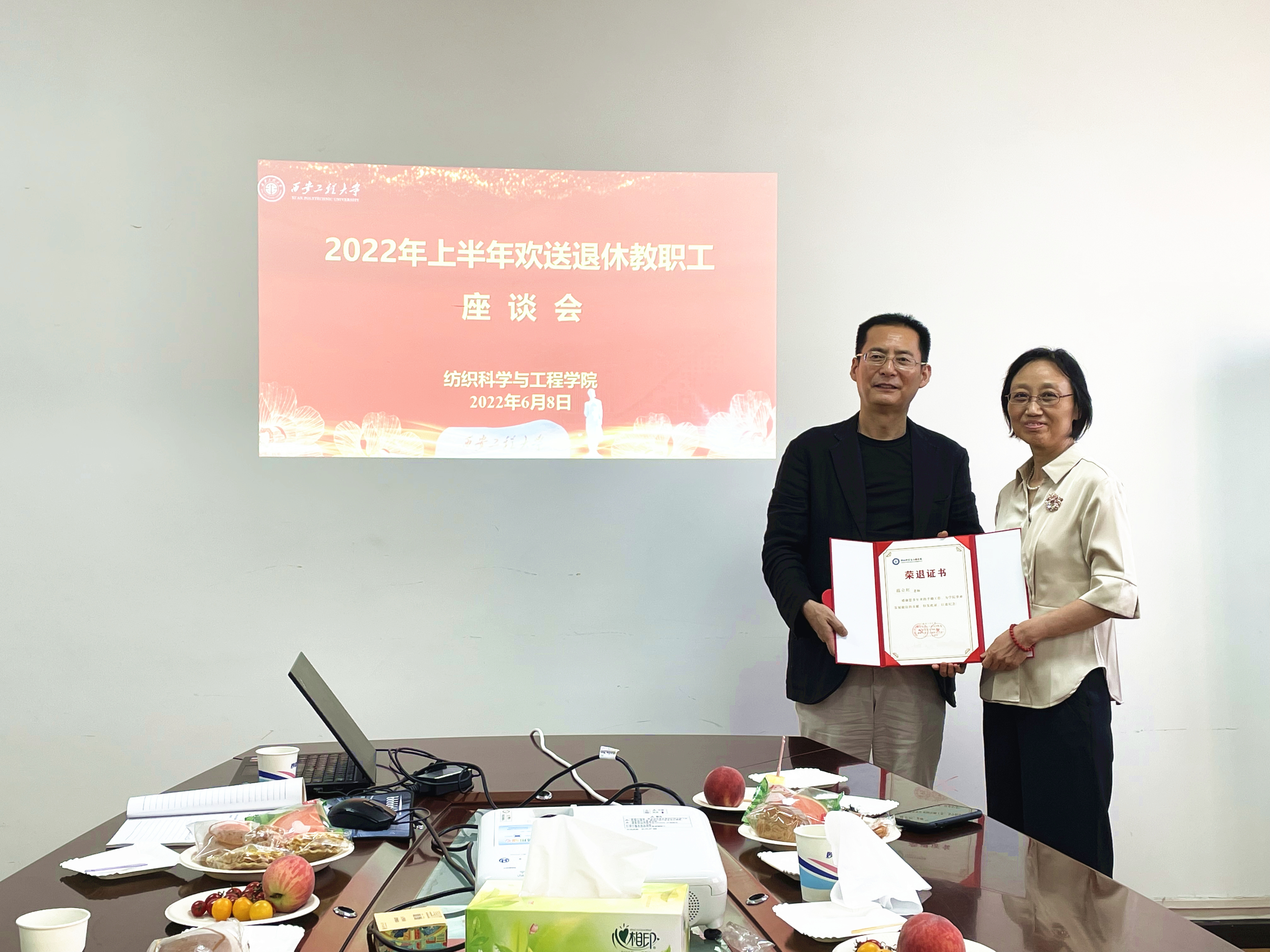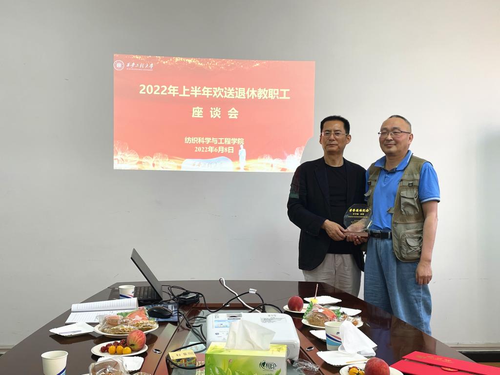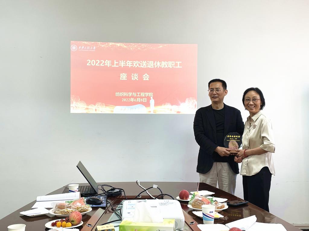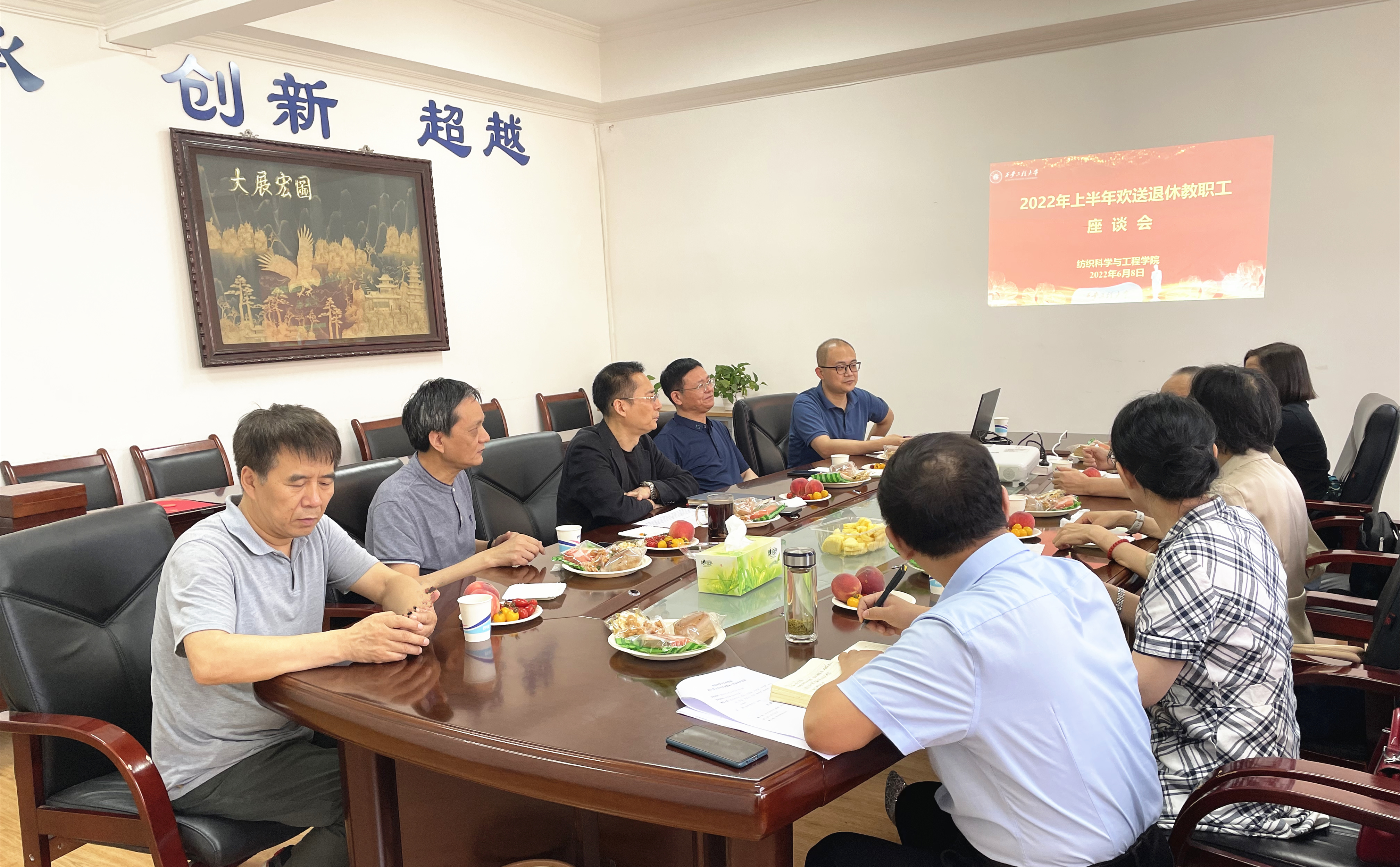 202268日,纺织科学与工程学院工会在学院会议室举行了2022年上半年欢送退休教职工座谈会。学院党委书记李伟、工会主席岳鹏飞、退休教师范立红和任学勤、工会委员、教师代表等十余人参加了慰问座谈会,座谈会由学院党委书记李伟主持。